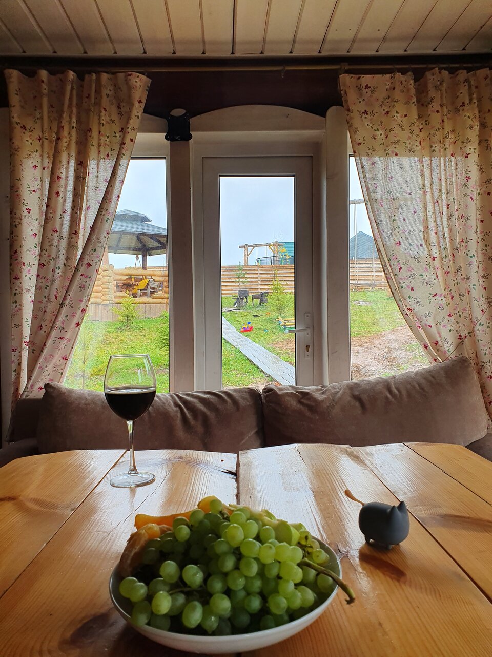 Очень приличный домик, в таком не то что отдохнуть, и жить одно удовольствие. Были два дня (2 ночевки), было славно. К дому прилагаются – мангал, качели, беседка батут. И конечно, парная, настоящая русская. Бассейна нет, есть река неподалеку, чистенькая, спокойная. Удовольствия масса. Хороший компромисс между цивилизацией и природой.