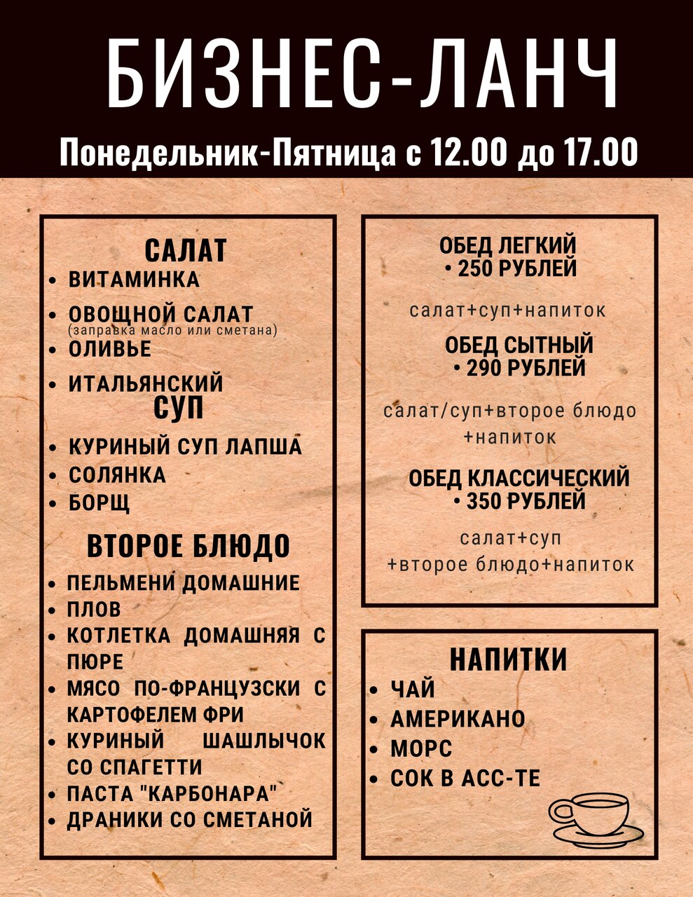 - Хорошее меню и обслуживание в кафе.