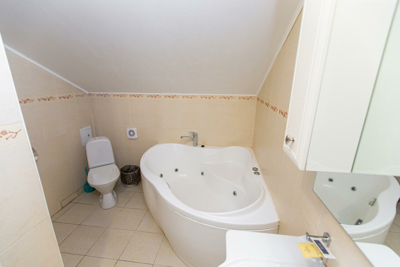 Удобства: фен, халат, тапочки, чай/кофе в номерах, джакузи, стиральная машина.
