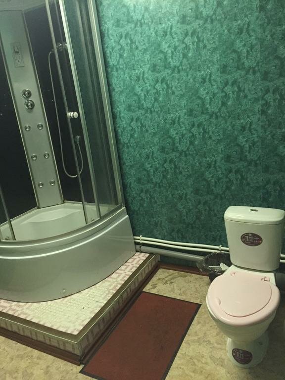 Гостиница расположена возле дороги,брали номер на троих люкс,но это далеко не люкс,просто в нем есть душевая кабина,где огромнейший стеклопакет(у которого просела створка и он не закрывается),если смотреть с улицы то ты там выглядишь как на сцене*.Цена 2800,чайника нет,есть телевизор,кровать на двоих и диван.Разеток вроде бы 2шт.одна в сан.узле,вторая возле телевизора,в которую включен он сам и ТВ.приставка на 20-ть каналов.Шум от дороги,шкафа нет,холодильника тоже нет,в общем ни чего нет.Слава богу живности тоже нет(клопов и т.д.)Душевая кабинка тесная даже для меня весом в 70кг.постоянно задевает локтями за флажковый смеситель в следствии чего тебя то обожжет,то охладит.В общем вы поняли.