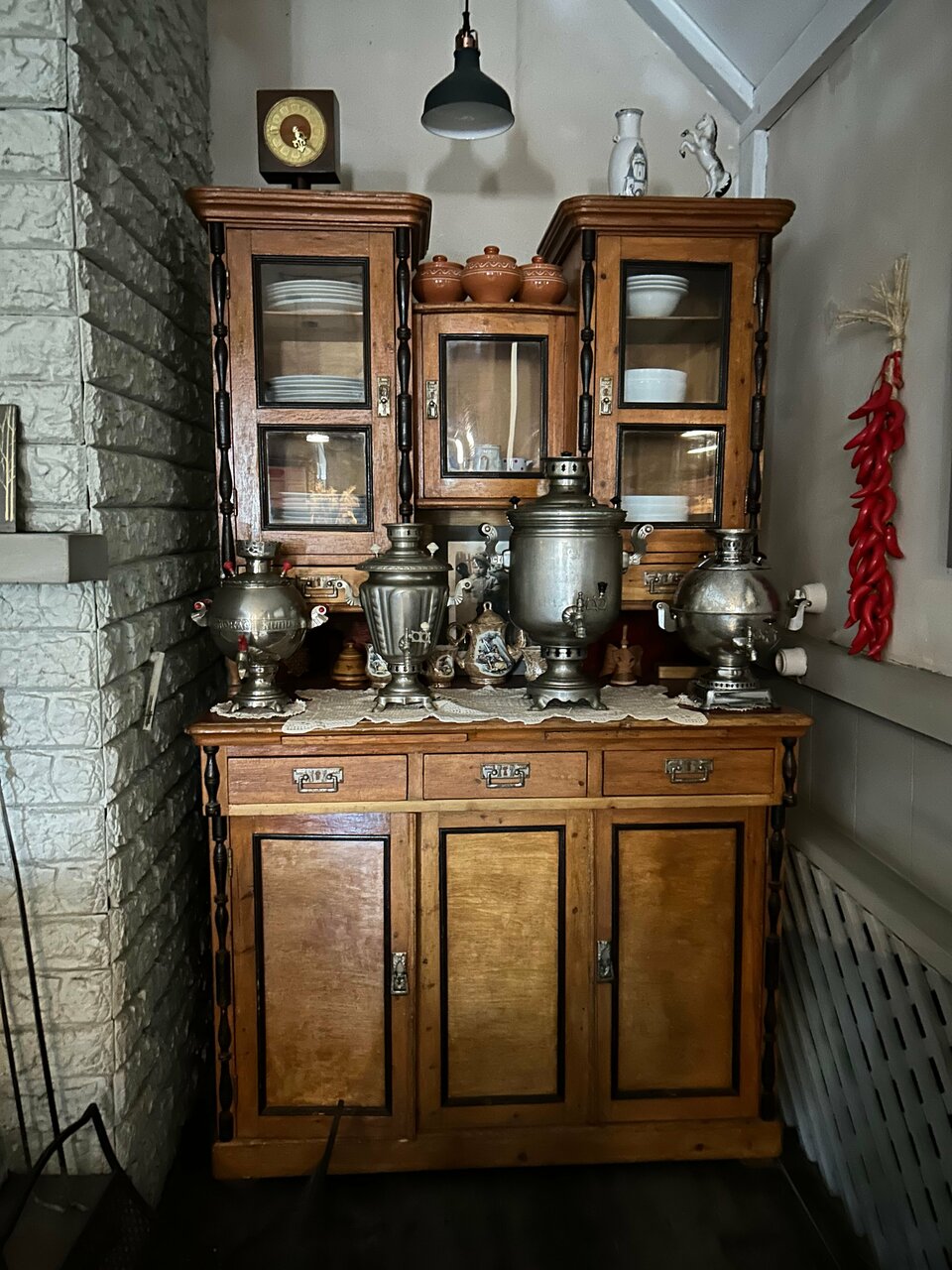 Еда очень вкусная, горячее — в сковороде или горшочках, цены в меню — не пугают. Интерьер сделан с любовью к 50-60-70-м годам. Номера на первом этаже оценить не могу. Если ночевать с удобствами в номере- то это второй этаж. Вода специфическая- с запахом, зубы числили кипячёной. В номере — чайник, чай, кофе, сахар и чашки. На втором — путаница с цифрами на брелоке и на двери, поэтому не скажу, какой у нас именно был, но справа и очень пыльный. Очень! Пыль — на полу в углах и высокий потолок весь в паутине( Общее впечатление этим испортилось, к сожалению