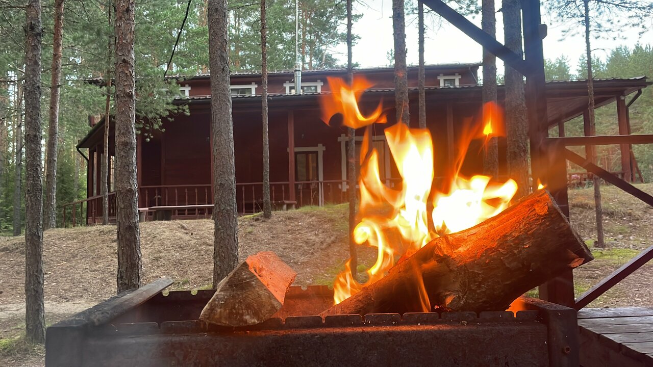 Замечательно место, были в марте 2021 года, можно отдыхать очень большой компанией, на кухне все есть ( посудомойка), все чисто.. Камин! В один из дней посетили монастырь Александра Свирского — минут 40 от этого дома. Обязательно съездите, незабываемое место паломников