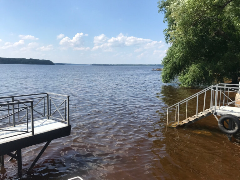 Хорошее место! Отдыхали в большом доме. Большая кухня-гостиная и две отдельные комнаты на первом этаже (по 2 кровати в каждой). Санузел с душем. Комната на втором этаже с двуспальной кроватью, балконом, кондиционером и видом на озеро! Санузел(раковина, туалет, биде). Плюс в холле на втором этаже есть раскладной диван. Постельное белье накрахмаленное чистое белое! Полотенца все белые! Красота Лодка, катамаран, велосипеды, новая детская площадка, беседка с освещением и розетками! Песчаное дно! Пирсы для рыбалки. В общем, нам все понравилось! Однозначно 5 звезд!