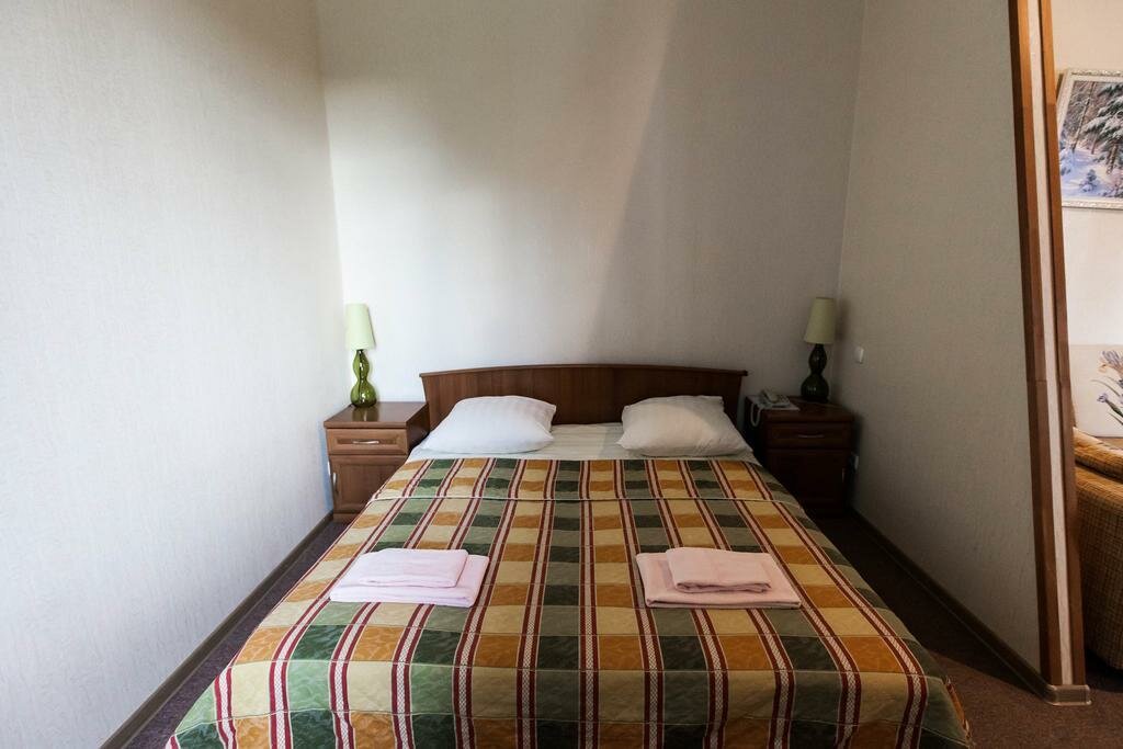 Однокомнатный номер в гостинице с одной двуспальной кроватью. Номер с собственным санузлом, оборудован душевой кабиной. Есть рабочее место, шкаф для одежды и мини холодильник.Стоимость за 1 человека - 2000 рублей.Стоимость за 2 людей - 2200 рублей.