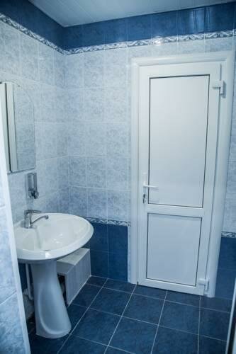 Номер с двухспальной кроватью/ или двумя односпальными с санузлом и душем в номере.