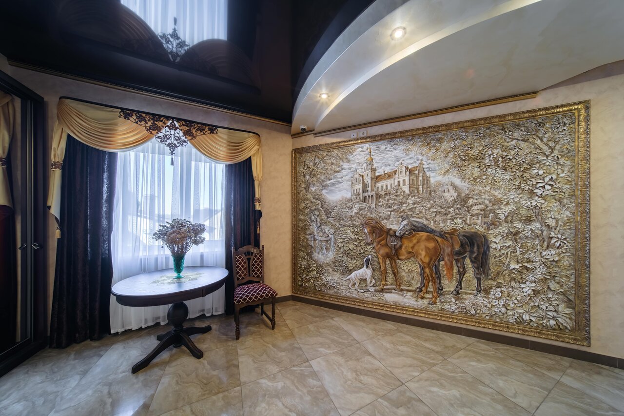Отель достойный.Все новое. Очень интересное оформление, везде висят большие картины в стиле дворцов 19 века. Завтраки хорошие. Выбор небольшой, блинчики или яичница, по заказу, но нам достаточно было. Есть место для курения на застеклённый лоджии. На первом этаже большой ресторан, но ничего не заказывали