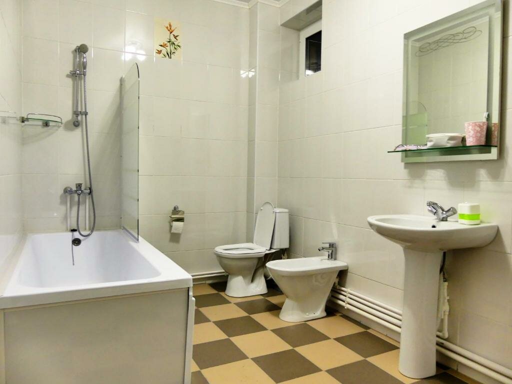 Приятная цена, хороший ремонт, завтрак утром. Ванная сделана из плитки со сливом в полу, все льется в комнату, было очень не приятно