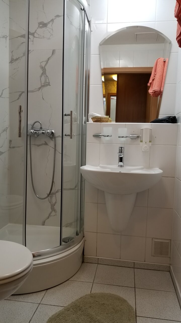 Очень понравился нам этот уютный отель. Номер был на третьем этаже, две комнаты, коридор и совмещённый санузел (просторный с теплым полом). Видно, что мебель старая, но это только придавало шарм такой уютной обстановке. Ванная комната с новым ремонтом. Везде было чисто. Очень приятно было остановиться здесь. Завтрак по заказу из меню, но заказ надо делать вечером. Было удобно, пришли в ресторан, сели и тут же принесли наш заказ. Нас было 2 взрослых, 2 детей.