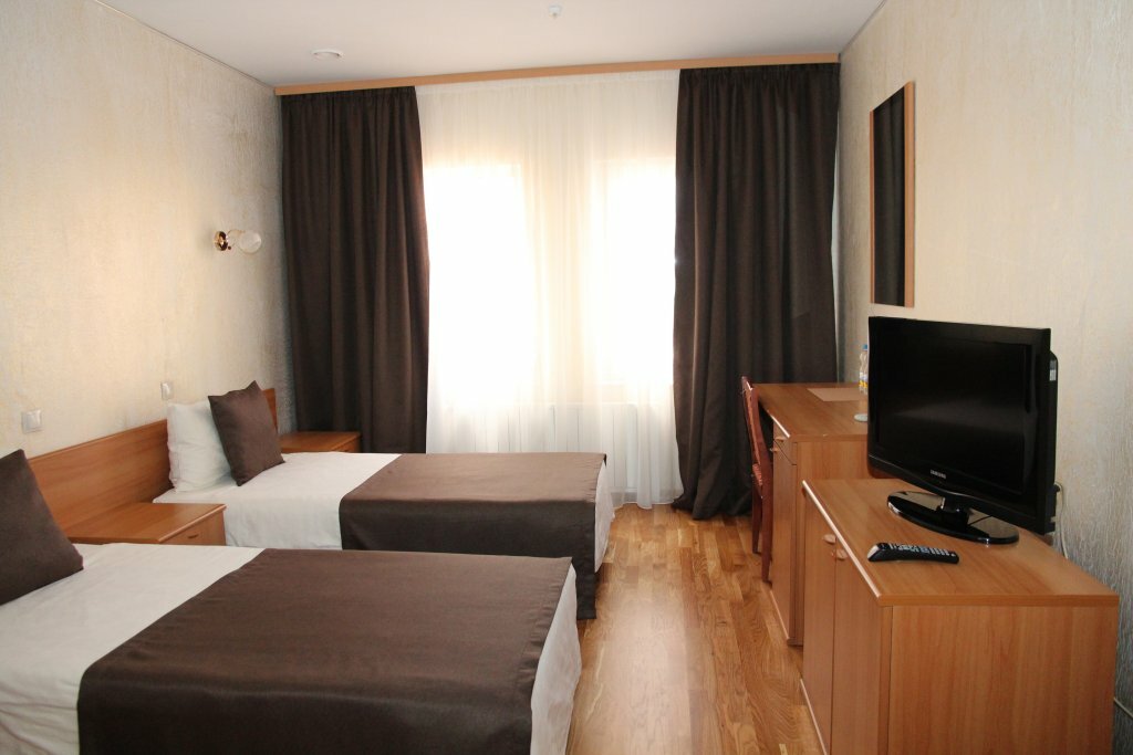 У нас был двухкомнатный люкс на втором этаже. В номере две проблемы. Плохо смывает вода в унитазе. И очень высокие и жесткие подушки. Все остальное (ТВ, интернет, завтраки) на твердую четверку. Главное достоинство отеля — буквально пять минут до Кремля, музея Лягушки, выставочного центра, замечательной кафешки ‘Вишневый сад’.