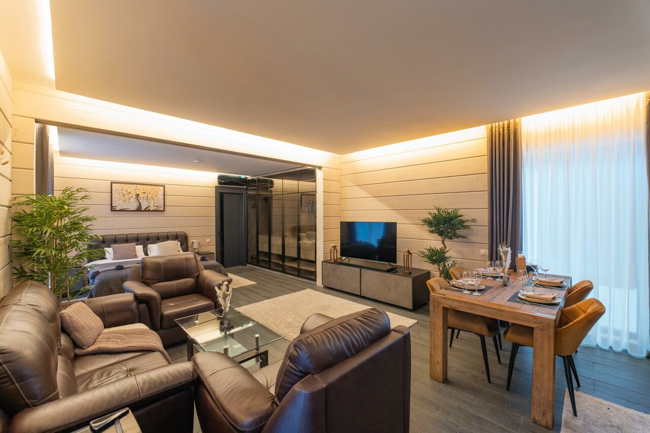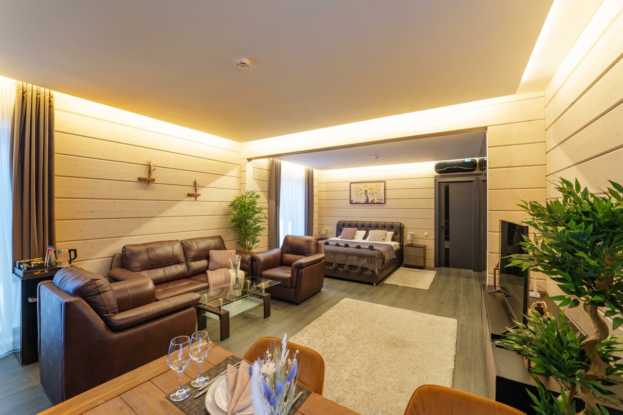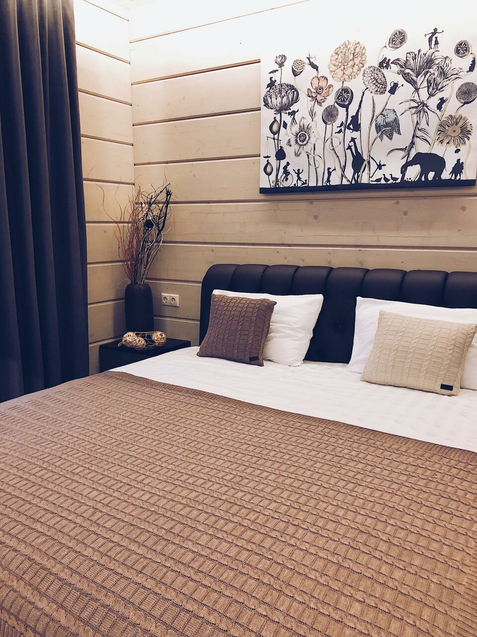 Останавливались здесь на пару дней в домике, всё очень достойно. В домике есть всё для комфортного проживание. Очень красивый вид вечером из домика (подсвеченные сосны, панорамные окна). Баня очень приличная, на дровах, есть купель и чан с подогревом. Очень красивая территория, много деревьев и подсветки. Ресторан кормит очень вкусно, но не так быстро как хотелось бы. Персонал отзывчивый и не заставляет себя ждать. В целом очень довольны. Спасибо.