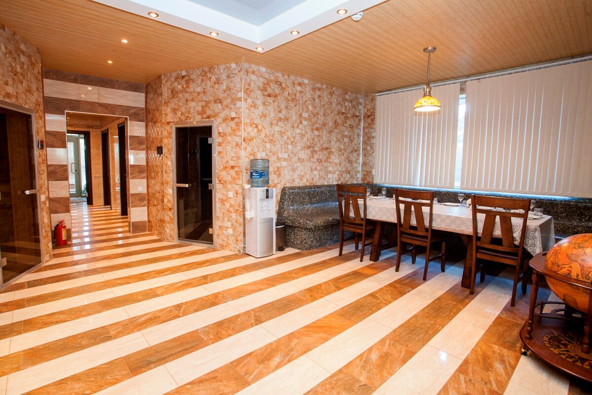 - Шведский стол на завтрак (почти бесплатный).; Возможность питания до 21:00.; Охрана и безопасность.; Подходит для отдыха компанией (баня, хамам).; Доброжелательный персонал.