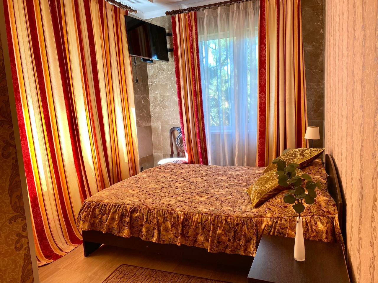 Гостиница предлагает комфортные номера с кондиционером, звукоизоляцией, Wi-Fi, телевизором, мини-кухней и санузлом. Доступны завтрак и ужин (питание не включено в стоимость).