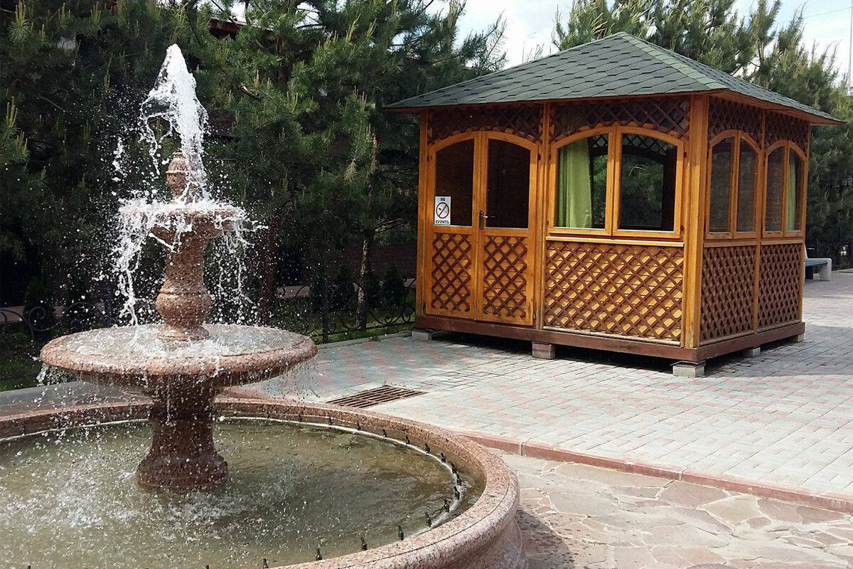 - Ухоженная территория (фонтан, детская площадка).