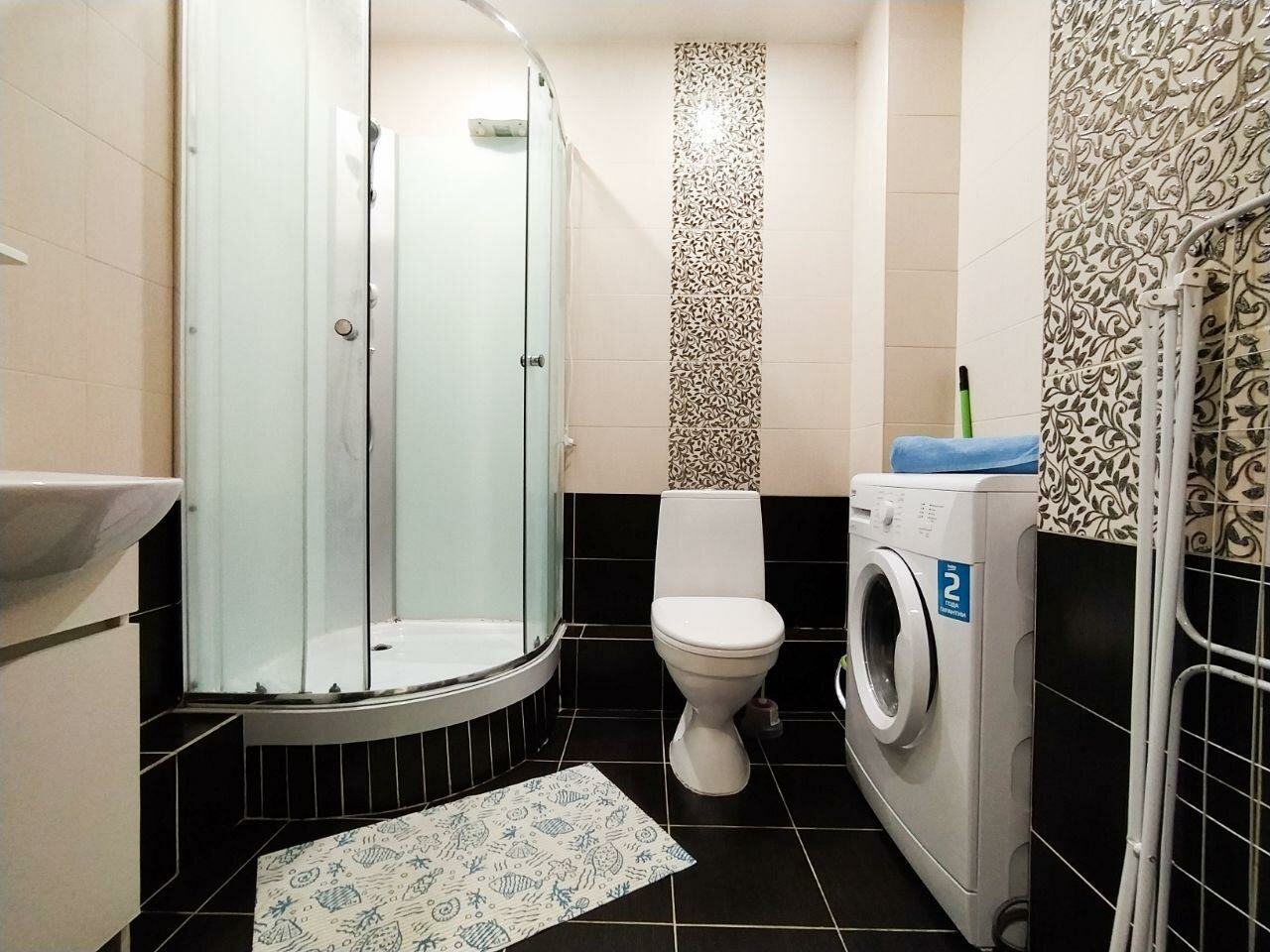 - Хорошая оснащённость (утюг, фен, стиральная машина, холодильник, чайник, посуда).