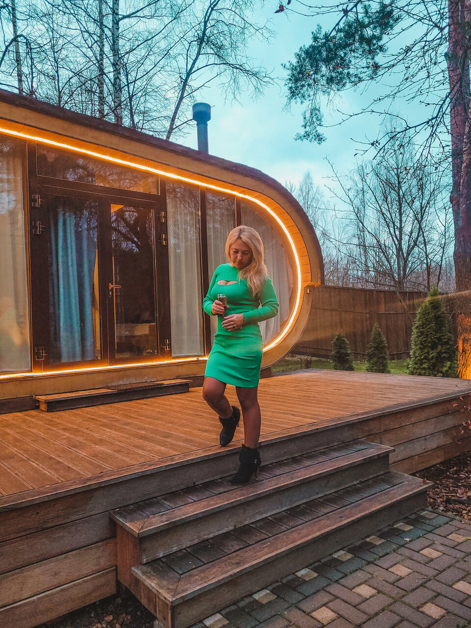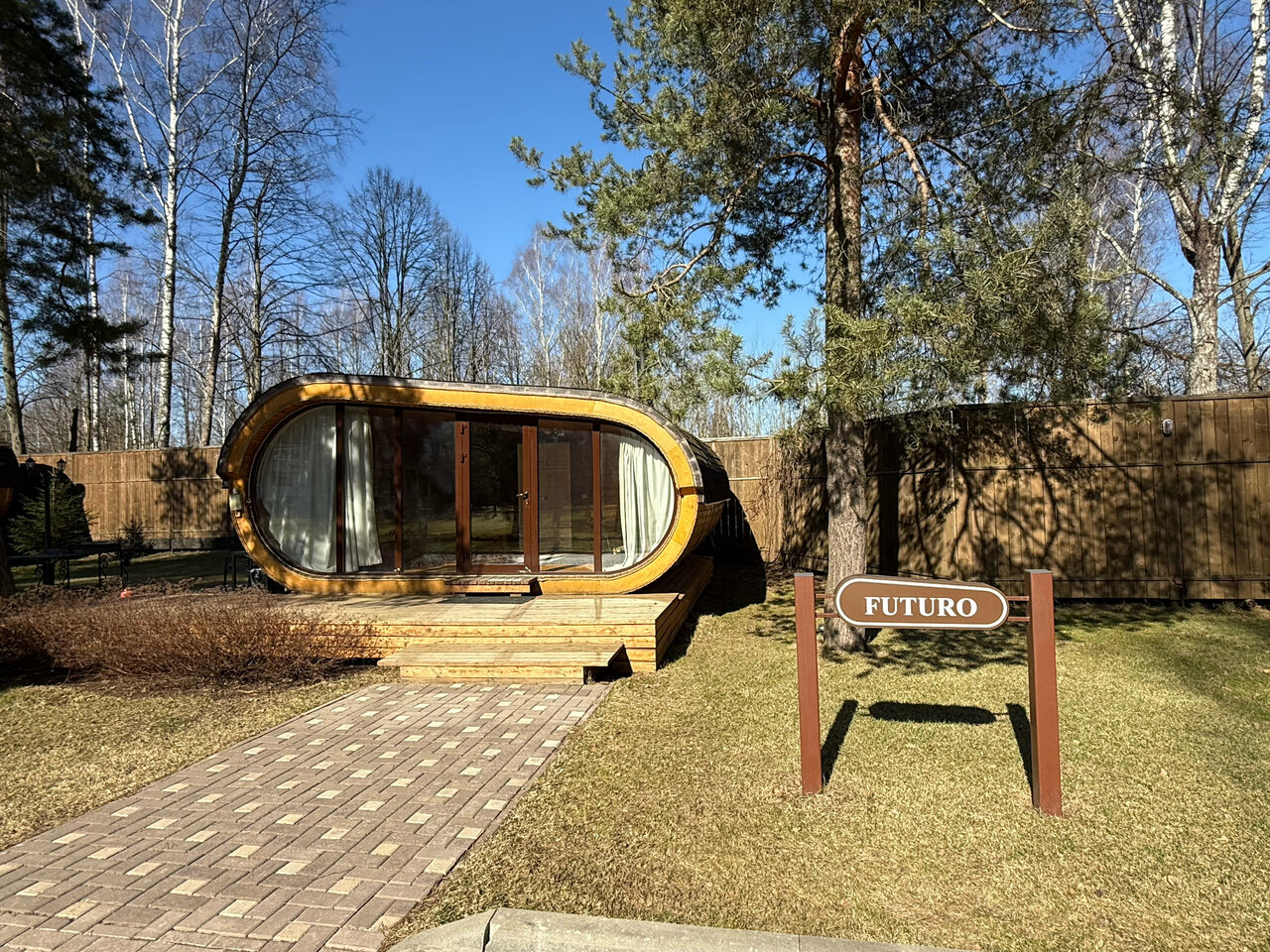 Это рай на земле! Прекрасная атмосфера, начиная с ресепшина и до камина в домике! Мы остановились вдвоём в Футуро. Парковочных мест предостаточно. Вежливые и внимательные девушки на ресепшене — сами спросили про день рождения (под него туда и приехали) и предоставили скидку. Территория уютная и тихая. Для детей есть игровая площадка и каток. Домик как снаружи так и внутри завораживает. Первая фраза, которая напрашивается, я хочу себе такой же домик! Виртуальный тур на сайте в целом соответствует действительности. Внутри домика Футуро он соответствует на 95%, снаружи домика на 30% соответствует. В жизни, снаружи Футуро, всё уже благоустроенно и намного, намного красивее! Очень рекомендуем туда съездить. Не пожалеете!