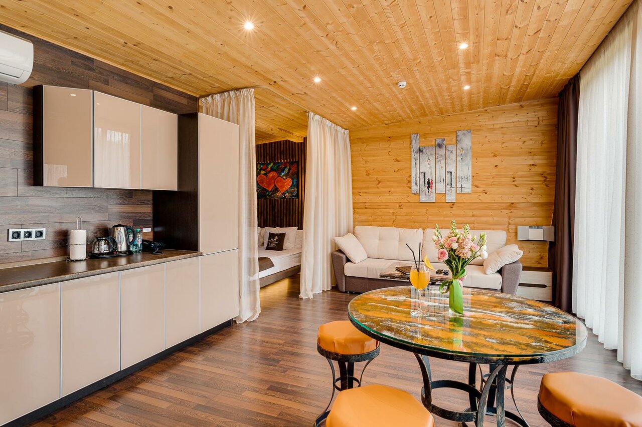 Потрясающее место для отдыха. Очень чисто, уютно и комфортно. Приятный и гостеприимный персонал. Советую всем кто хочет уехать от городской суеты, провести время с любимым человеком или в компании друзей. Здесь есть всё необходимое.