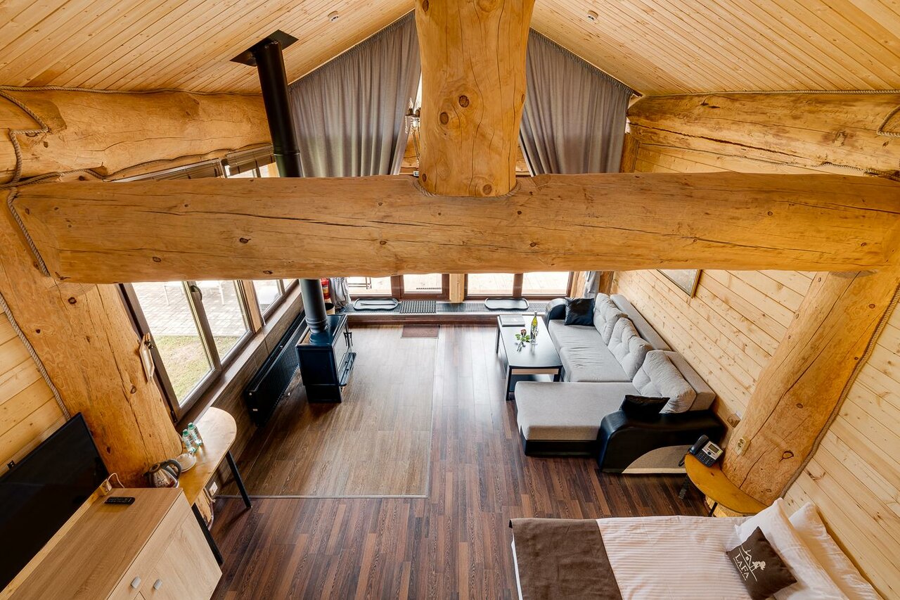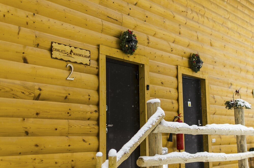 - Уютные домики с каминами.