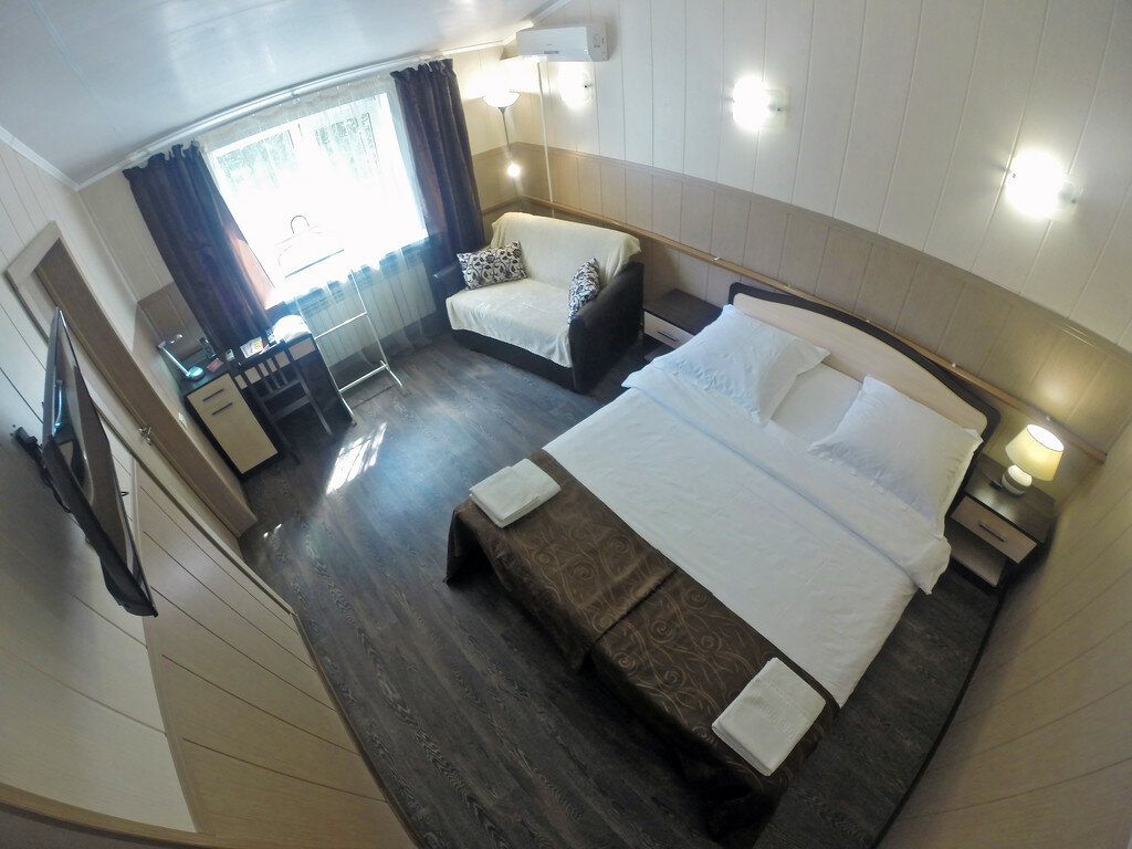 Номер для двоих. Есть телевизор, кондиционер, холодильник. Внимательный персонал.