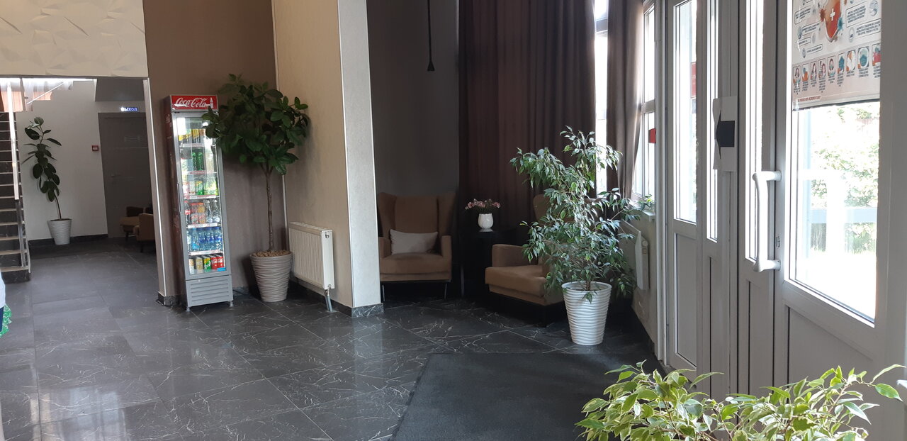 Что могу сказать. В целом всё нормально для того чтобы только переночевать — просторные, почти чистые номера. - В номере 12 точечных светильников и они работают только всё сразу, включить половину нельзя. - Нет обещанного WiFi, поэтому работать здесь вы не сможете - Нет холодильников в номерах, как написано в описании. Общий холодильник, в комнате персонала, но он занят. Поэтому, если вы везёте продукты, это тоже не подходит - всю ночь течёт унитаз - ОПЛАТУ принимают или переводом или наличкой - администратора на месте нет, не дозвониться, ждали 10 минут - никакой охраны на входе