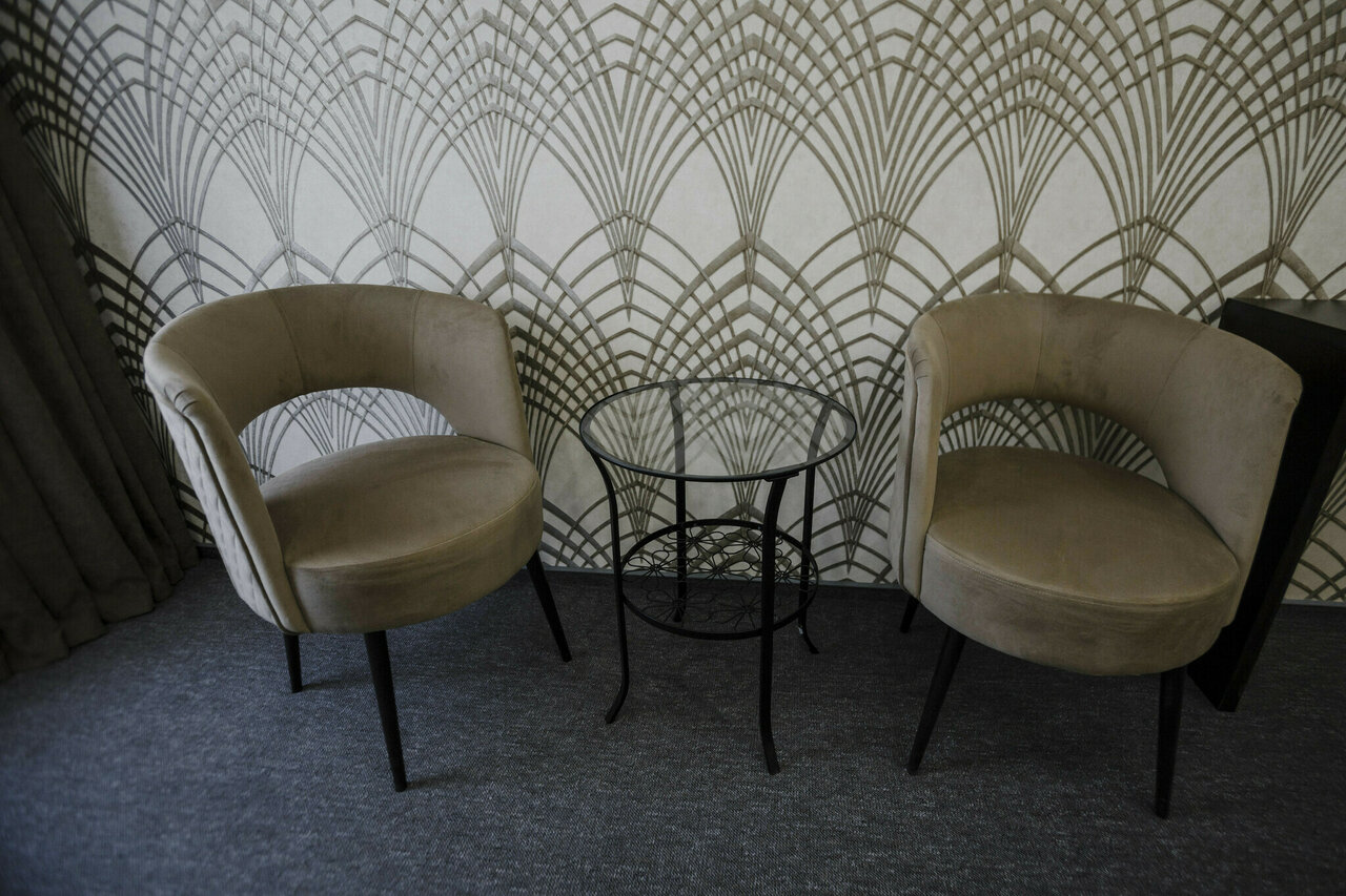 Чистенько (ремонт свежий), комфортно, кондей, мебель приличная, но!!!! Нет то есть от слова совсем стульев!!! Ни одного, кушали стоя как лошади ))) обслуживание вежливое, туалетная комната приличная))) надеюсь стулья купят )))