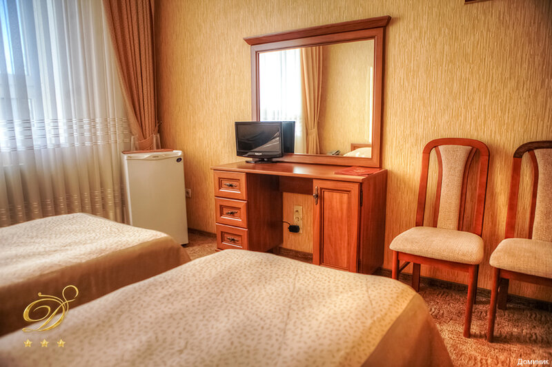 Гостиница «Доминик» (Донецк, ул. Артёма, 142А) — трёхзвёздочный отель с комфортабельными номерами, оснащёнными кондиционером, холодильником, мини-баром, телевизором, феном и чайником. Гостиница предлагает крытый бассейн, сауну, spa-услуги, массаж, ресторан и салон красоты. Для гостей доступны парковка, химчистка, прачечная, камера хранения, сейф и круглосуточный консьерж-сервис. Отель расположен вблизи центра (до 5 км), предоставляет трансфер до аэропорта и бесплатный Wi-Fi. Контакты: +7 (949) 413-77-08.