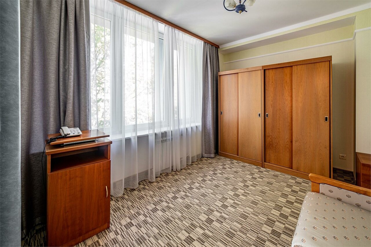Ужас!((( Привет совдепия! Всему интерьеру,что в номере и ремонту не менее 40 лет! Санузел один на два номера (даже шторки для ванны нет) ))) размер двухместного номера 3 на 2 метра! Это много!) Три тысячи за номер… Считаю это того не стоит!