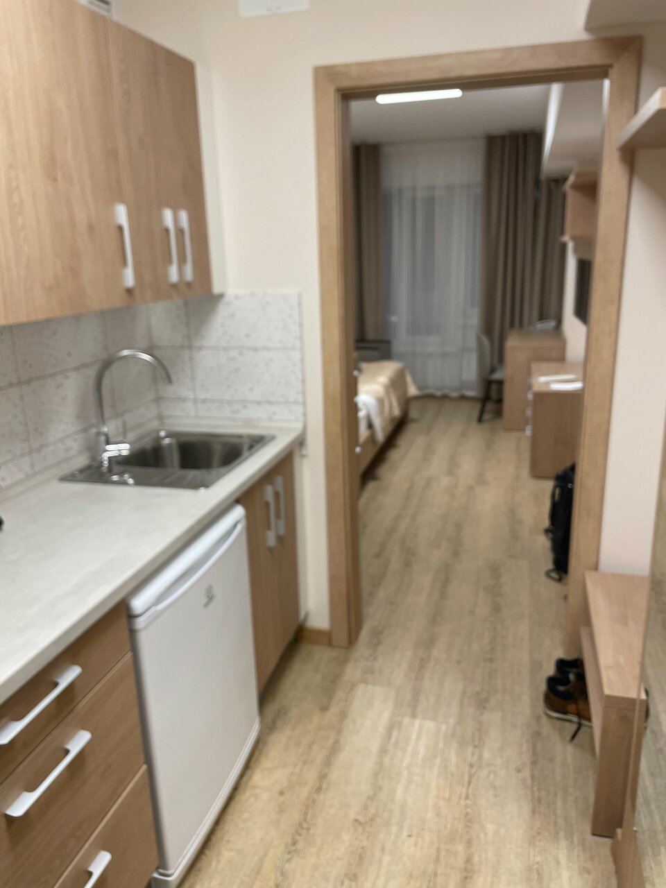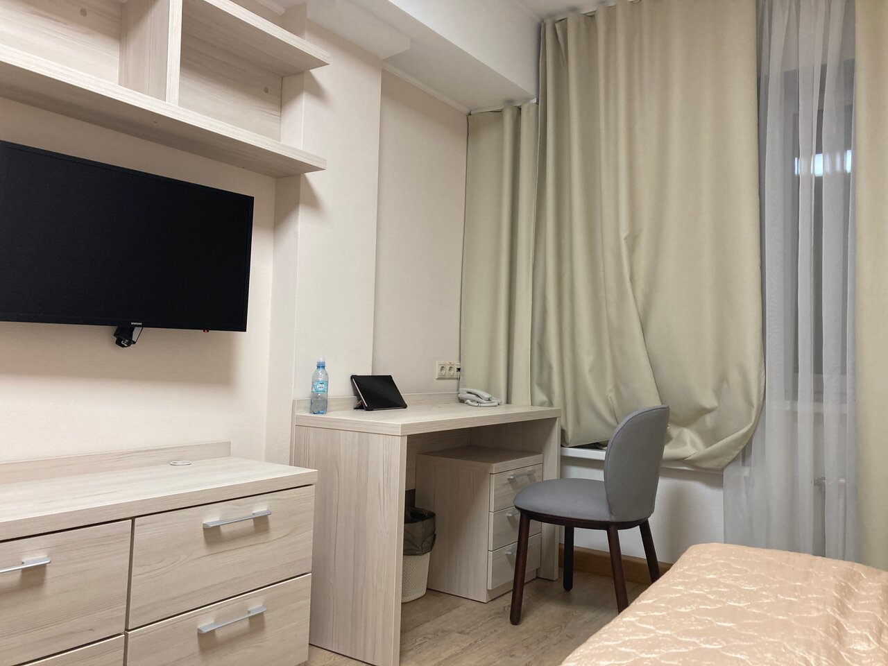 Жить можно, но, сервис оставляет желать лучшего. Не хотели меня заселять, так как номер бронировала секретарь на свое имя, и они ждали что она будет заселяться. Наличие ваучера, номера заказа, квитанции об оплаты от меня оказались не убедительными, конечно же пришлось звать их руководство для решение данной проблемы. Воды в номере нет, кулер только на первом этаже, и этот кулер для всех постояльцев отеля. И естественно к вечеру воды не осталось. Поменять воду некому, так как выходной день. Номера маленькие. Я бы сказал что это не гостиница! Это апартотель. Завтрак: Вареники с картошкой, йогурт, невкусная сосиска, помидоры и огурцы. В общем ужас. Второй раз в этой гостинице по доброй воле проживать не буду!