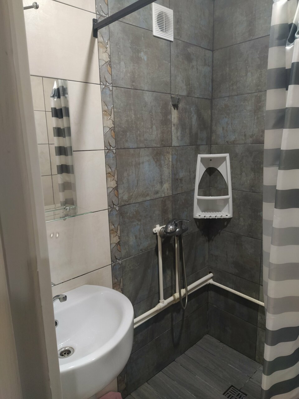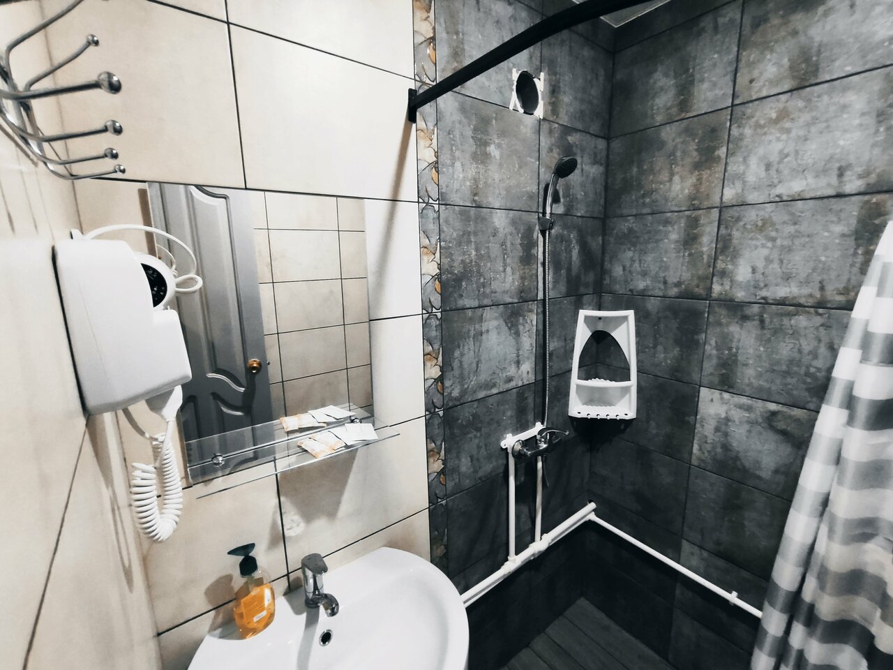 Вода вонючая, линолиум порваный, душевая кабина разваливается под ногами, унитаз отдельная история. Номер 10. Единственный плюс, чи стое бель.