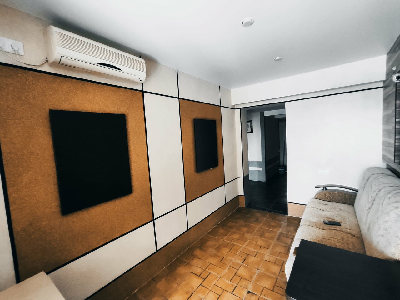Ночевали одну ночь, кровати норм, кондиционер работает. Ночью открывали окно шума небыло. Стоянка авто под камерой.