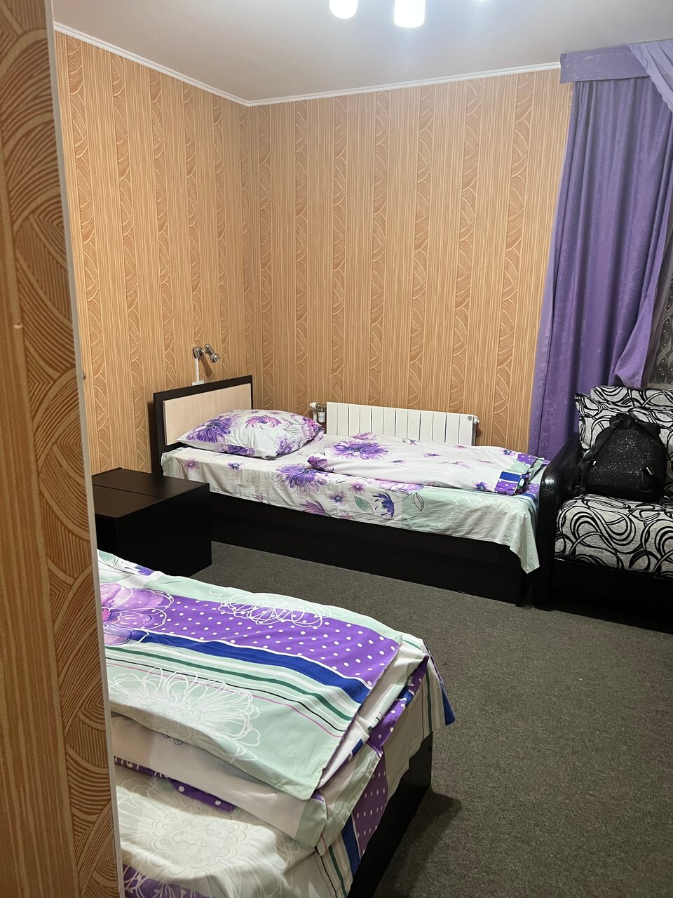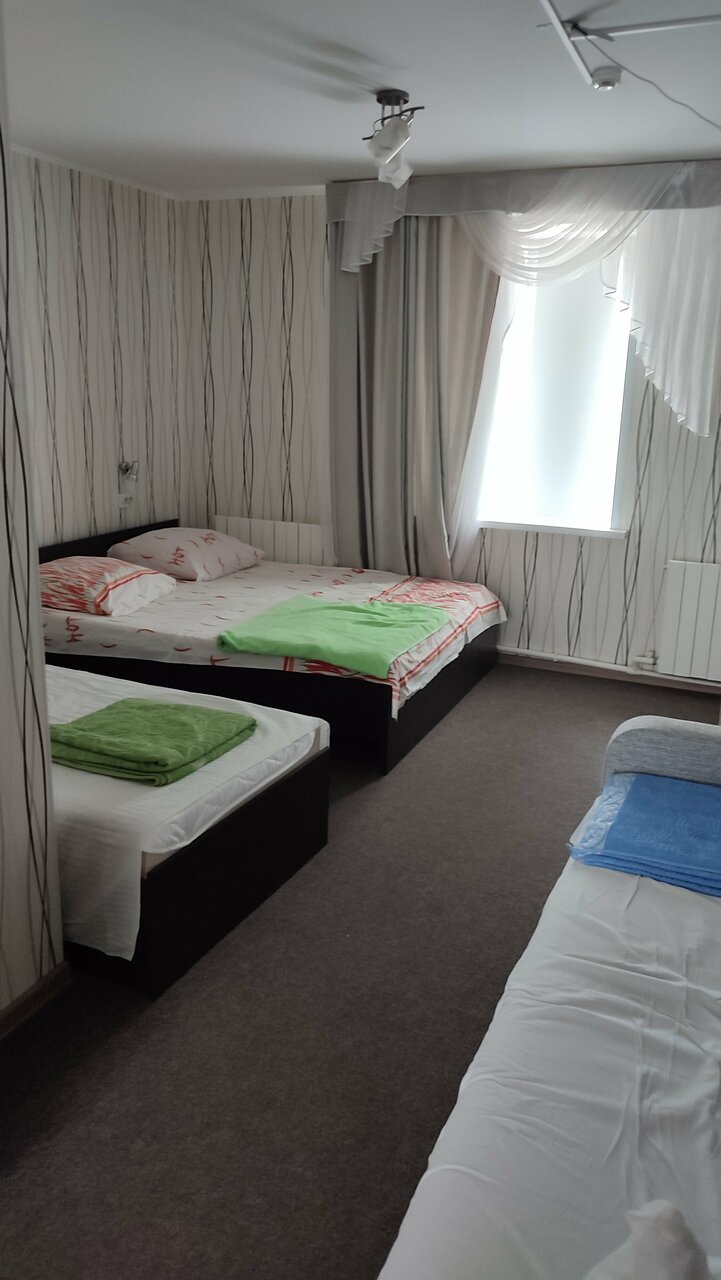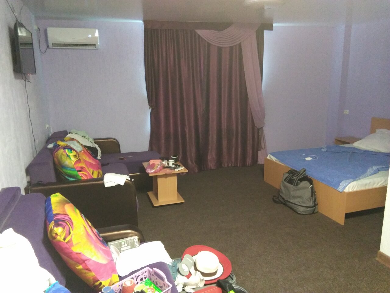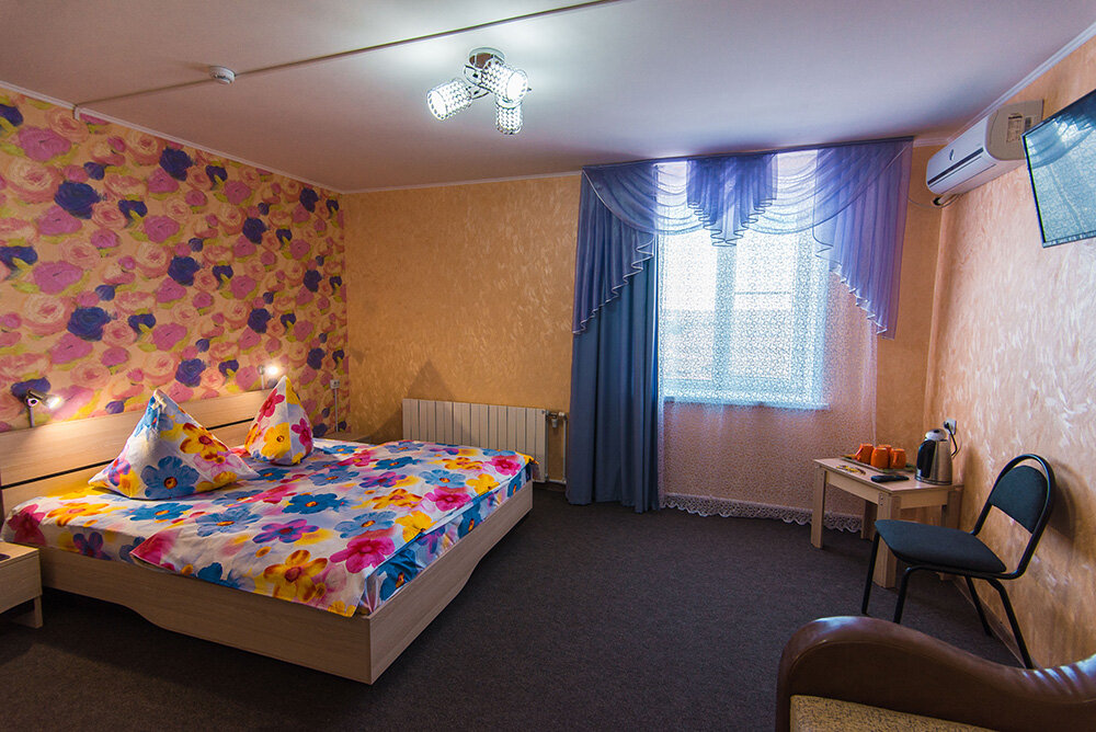 Буду объективна, ну не поставить гостинице о двух звездах, пять) Заехали переночевать по пути, по рекомендации друзей. И не пожалели. В номере чисто. Постельное белье и полотенца свежие, чистые и выглаженные. Нет пересорта, нет цветастых наволочек, все белое. В номере: мощный кондиционер, холодильник, чайник и ТВ. Стабильная раздача WI-FI. Санузел совмещенный с душем. На первом этаже: 24 часа в сутки встречают милейшие дамы, которые вас и зарегистрируют, и в номера проводят. Холодильник с напитками (цены, примерна, как в супермаркете), кулер, бутыль с помпой, дабы чаю отпить в номерах) Большая комната для приема пищи со всей необходимой посудой. Схема: погрел-поел-помыл за собой