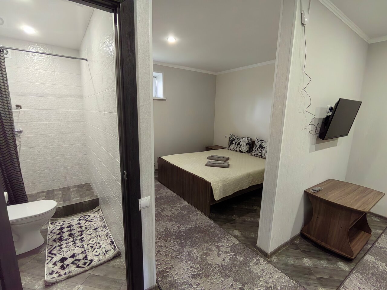 Всё современно и чисто,кровати и матрасы удобные. ТВ, интернет,всё в огоньках. Номер уютный, с удобствами внутри. Цена/качество соответствуют. Своя парковка с видеонаблюдением. Удобное расположение! Спасибо за отдых.. Процветания вам и благодарных клиентов!!