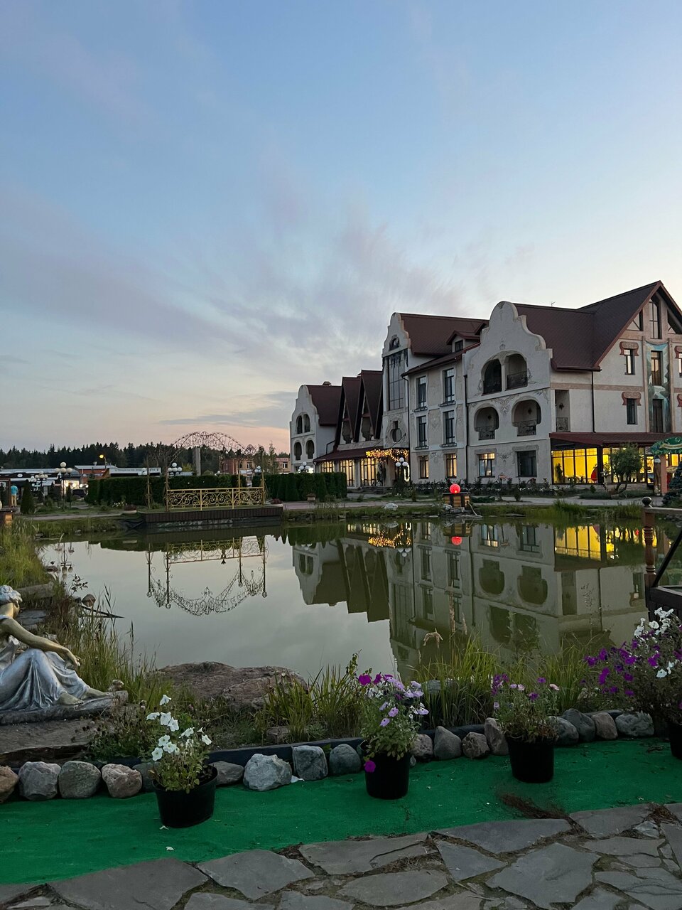 Я была там в гостях, поразило как со вкусом сделан комплекс, очень красивая территория- цветы, водоемы, фонтан , даже карета)) Внутри очень красиво, номер ( люкс) очень комфортный с балконом. Вобщем, я бы с удовольствием приехала еще раз