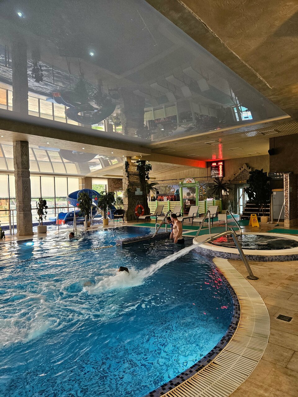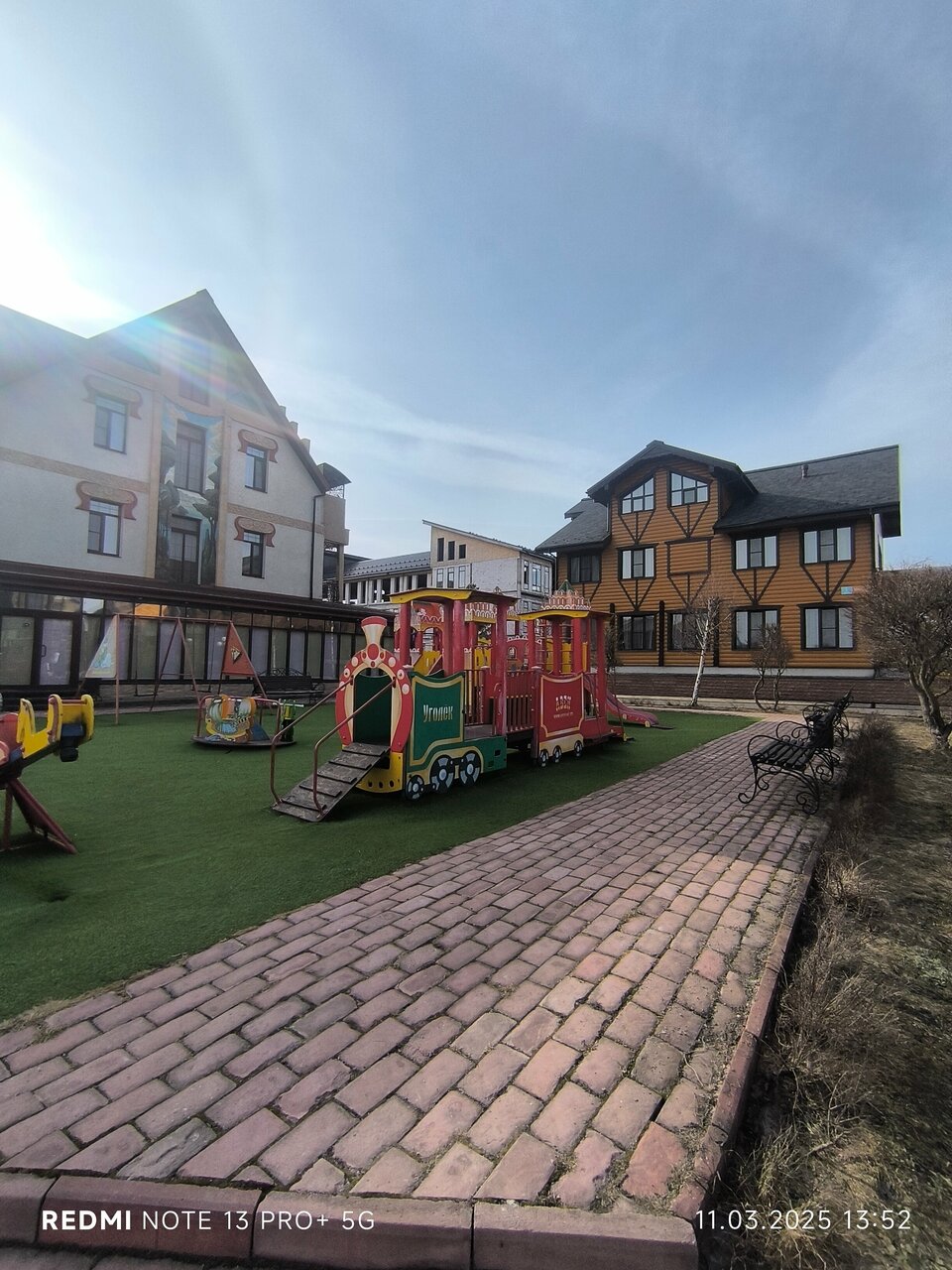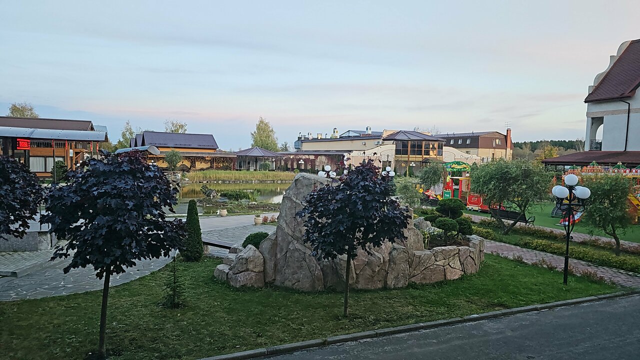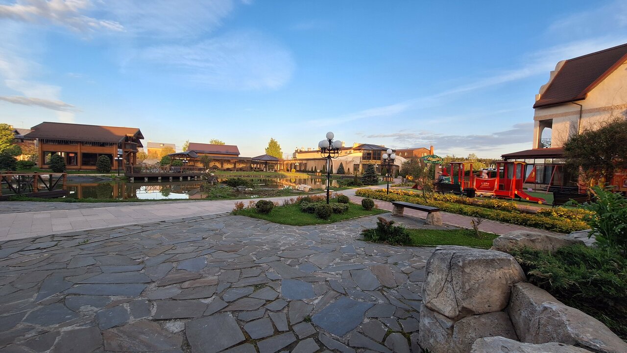 Очень контрастное место, есть плюсы, но минусов больше, средняя оценка 5 в Яндексе точно не соответствует реальности. Номер в экодоме чистый, просторный, но кондиционер еле еле работал, утром на третьем этаже жарко. Персонал приветливый, на территории есть боулинг, караоке, неплохой массаж. Территория местами хороша, местами неухоженно, вокруг начинается стройка. Центральный пруд — красиво, на окраине еще один грязный пруд и зоопарк. Сама территория небольшая. В ресторане половина позиций отсутствует, в кафе в аква зоне просто не работала кухня. Спа зона как темная кладовка. Шведский стол завтрак неплохо, но микроволновка грязная, столы грязные. Обедать и ужинать ездили в город. Общие впечатления неплохие, ничего критически плохого, но и возвращаться желания нет.