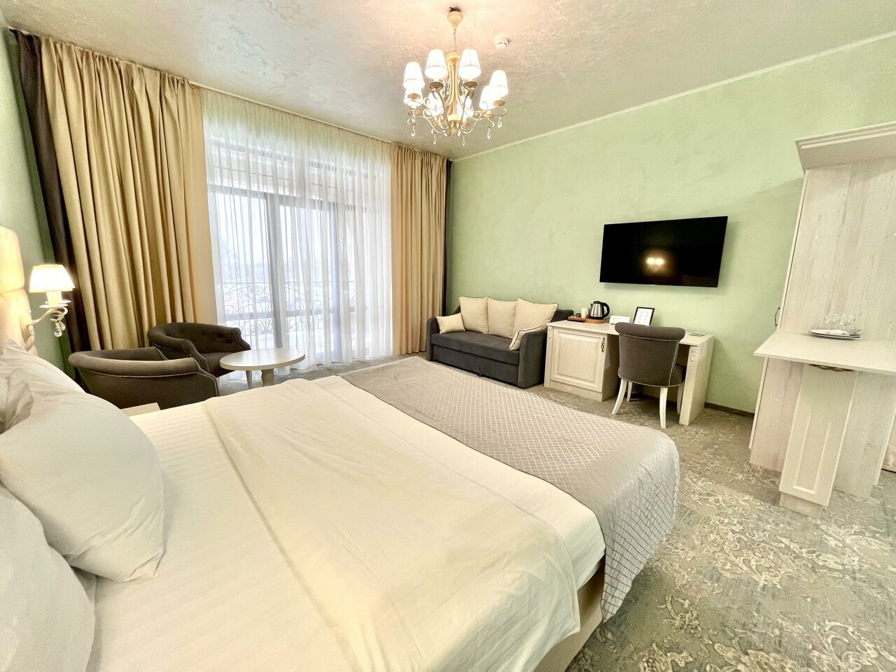 Не раздельная кровать, диван раскладной, комфортабельный номер с туалетом, ванной, феном, холодильник с баром, телевизор 43' со смарт-тв, кондиционер и бесплатный wi-fi