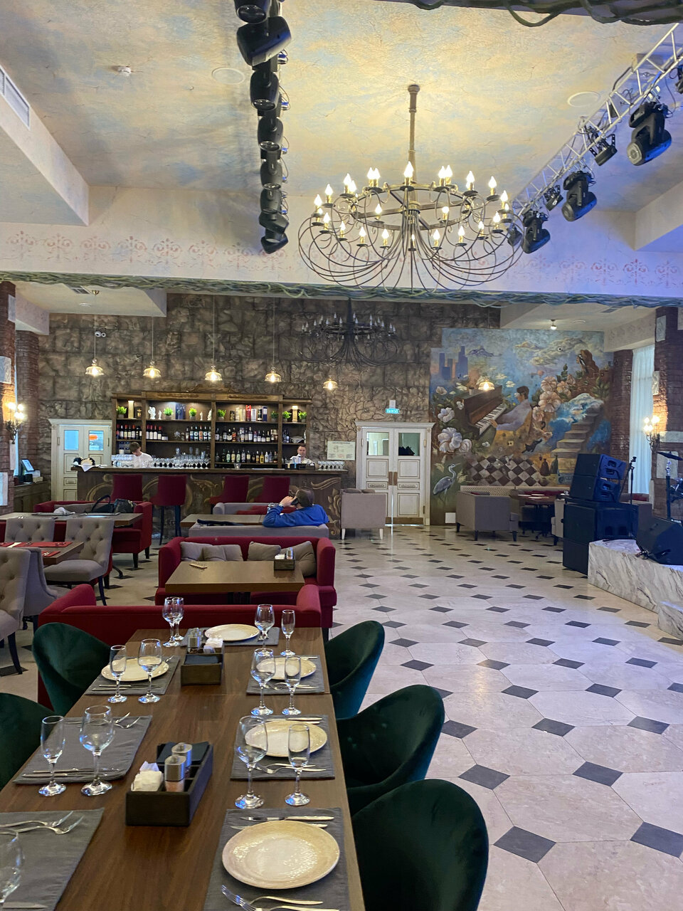 Шведский стол хороший, готовят вкусно территория ухоженная, неплохая живая музыка, персонал приветливый, есть бильярд, караоке, боулинг… Из того что не айс,… В конференц зале духота уже через пару часов, кондиционеры есть но ситуацию не спасают, в номерах из за того что домики деревянные повышенная слышимость… И последнее дизайн все сделано дорого богато по меркам 2000-х но сейчас это смотрится архаично и аляповато но в целом посетить стоит