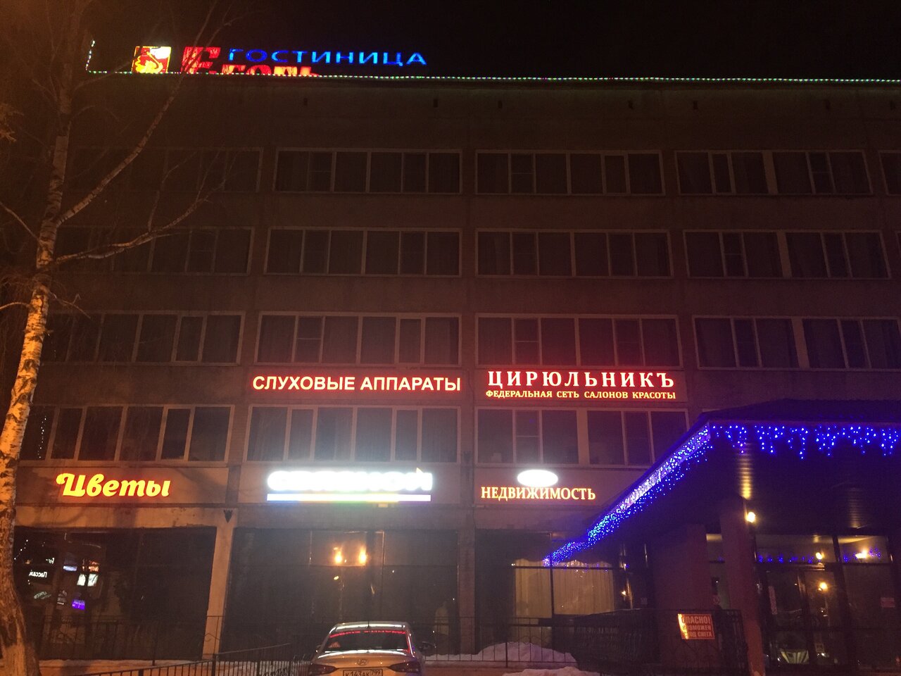 Гостиница в самом центре города, рядом бургеркинг, магнит, столовая и кафешки. Во дворе парковка, номер очень хороший, огромные окна во всю стену с видом на сквер. Удобная кровать, хорошее бельё. Рядом со входом хорошая шаурмичная, можно перекусить работает до поздна