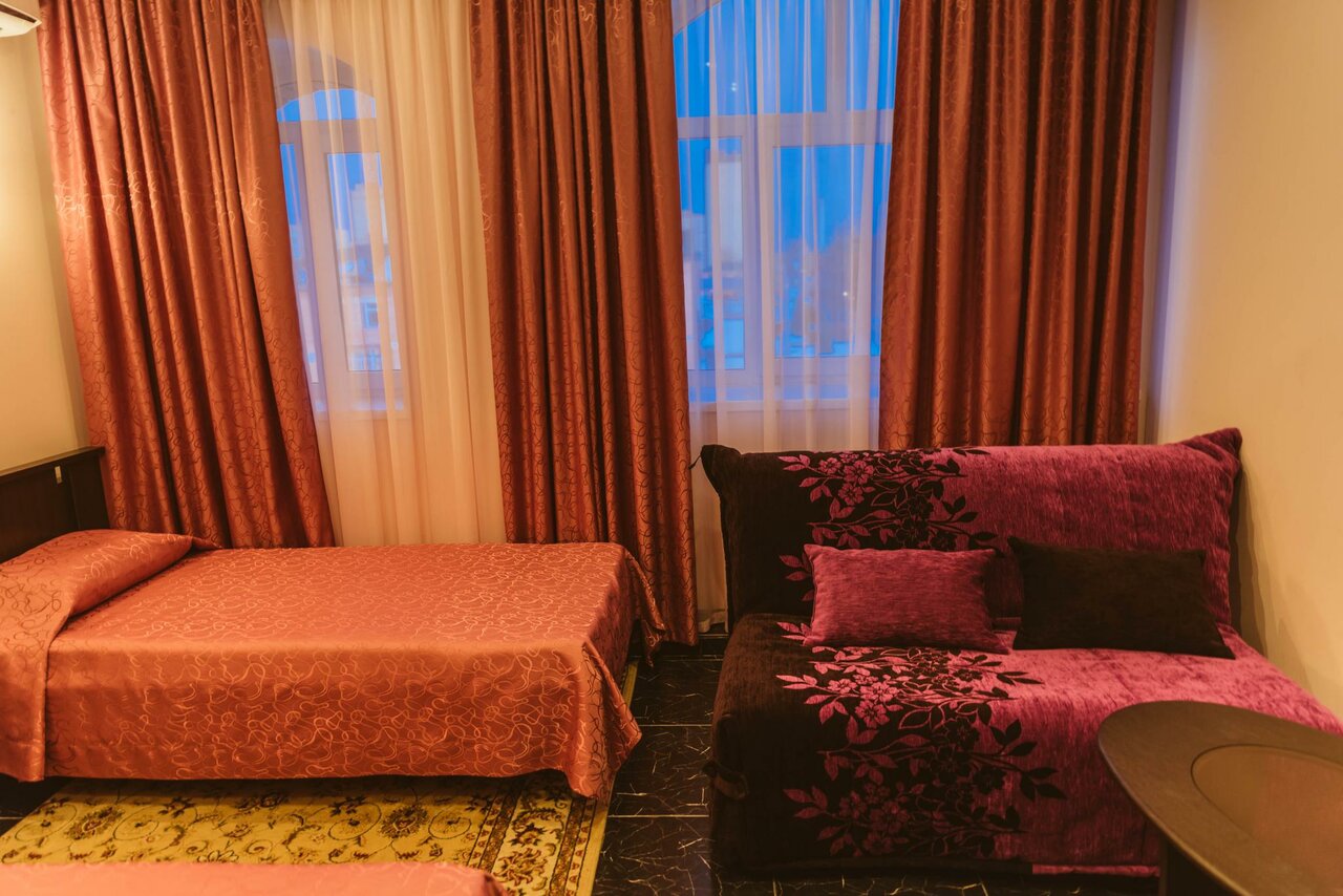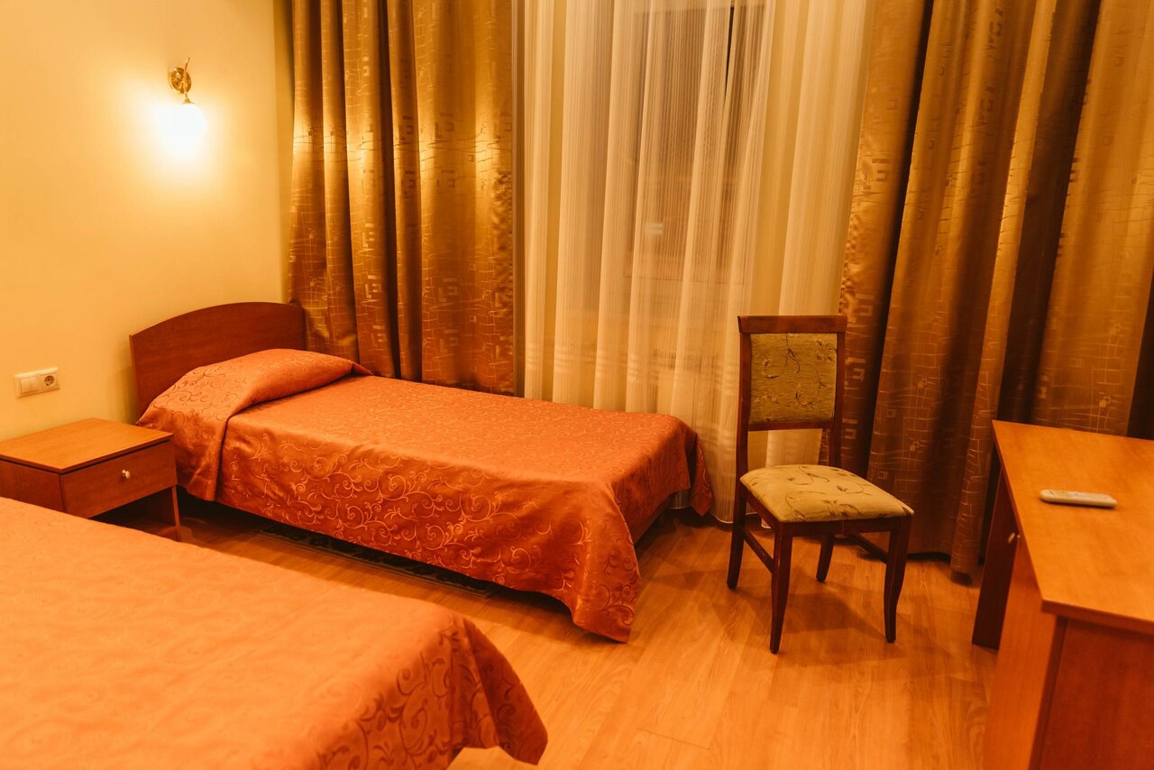 Останавливались на ночёвку,в новогодние праздники,как туристы. Из плюсов — высокие потолки,датчик движения в ванной комнате,чисто везде и много цветов в холле. Позабавил статус трёх звёзд Из минусов- отсутствует вода в куллерах, холодный плиточный пол ,без отопления в номере,в кафе одна алкашка, здание расположено на углу оживлённого перекрестка….