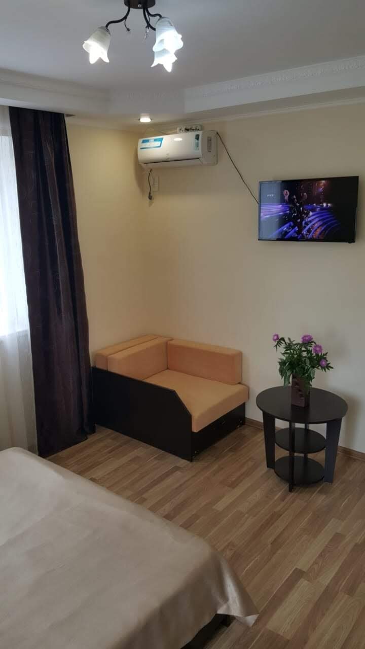 Мы часто путешествуем, но такого отношения от хозяев дома ещё не встречали. Отношение не как к случайным постояльцам, а любимым гостям. Хозяйка Галина всегда готова вкусно накормить, на завтрак голодными не останетесь! Да и обедать предпочитали там же — у хозяйки за небольшую плату можно заказать вкуснейший борщ или наваристый куриный суп. Ни в каком кафе вас так не накормят! Чистота кругом — идеальная. Все удобно и комфортно. Сам гостевой дом совсем небольшой (при этом номера вполне просторные, с хорошей мебелью и всем необходимым), у каждого номера свой столик во дворе. Проблем с готовкой, стиркой, глажкой — нет. Если в номере занят душ — на улице есть ещё один, чистый и просторный. Для маленьких детей есть уголок поиграть. От моря вот далеко, но и с этим тоже проблем особо нет — остановка автобуса до центрального пляжа — прям напротив. Спасибо Галине и Давиду за лучший отдых!