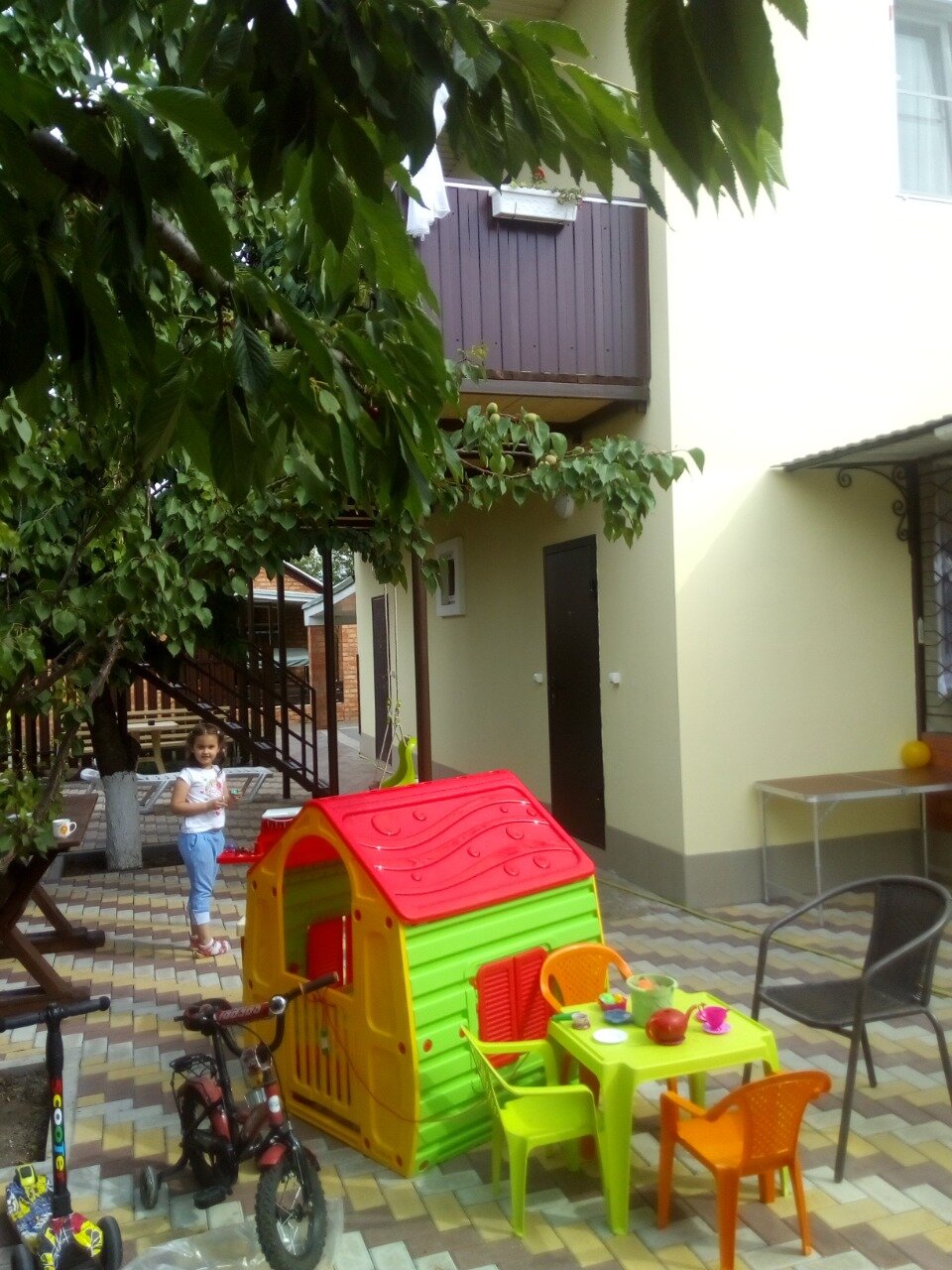 На фото не видно сам гостевой дом, а он очень красивый. Новое здание, свежие номера, очень стильно обставлены, уютные, детское спальное место удобное. Горячая вода, сплиты мощные, все есть. Общая кухня с посудой, беседки классные, столики на балкончике. До пляжа быстро добирались, прям рядом проходят маршрутки и в центр, и в парк и на прогулочную набержную на Каменке. Спасибо за чудесный отдых!