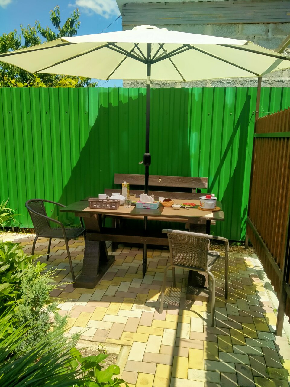 - Уютный внутренний дворик с индивидуальными столиками.