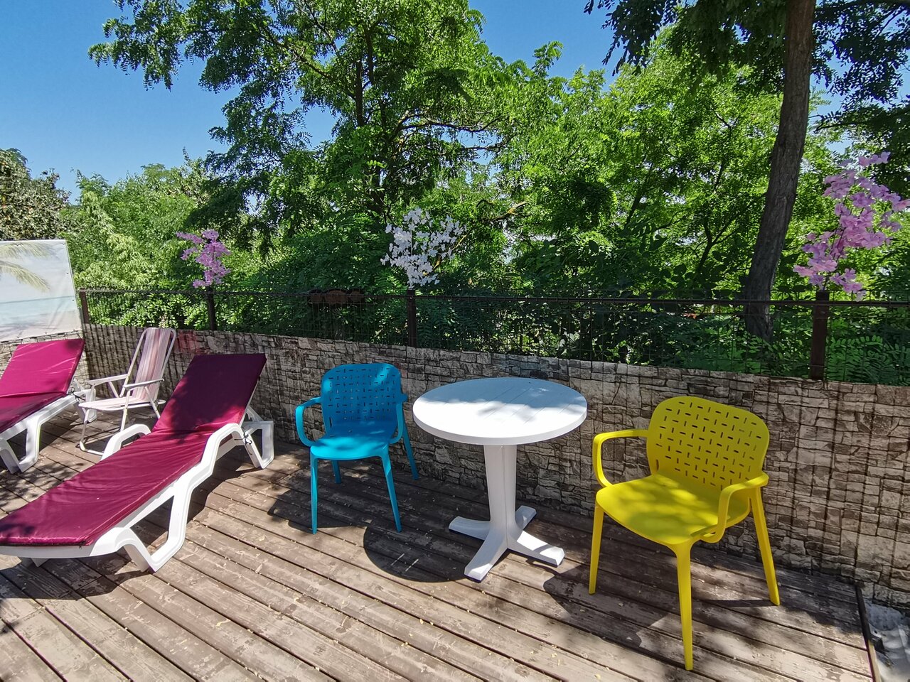 Уютное место! Изюминка-терраса с видом на море и шезлонгами! Хозяева доброжелательные, номера хорошие и цены приятные. Пляж рядом, песочек. По сравнению с центральным все развлечения на пляже дешевле в 3-4 раза. Арендовали сапы и водные детские горки за смешные деньги. В общем, советую!