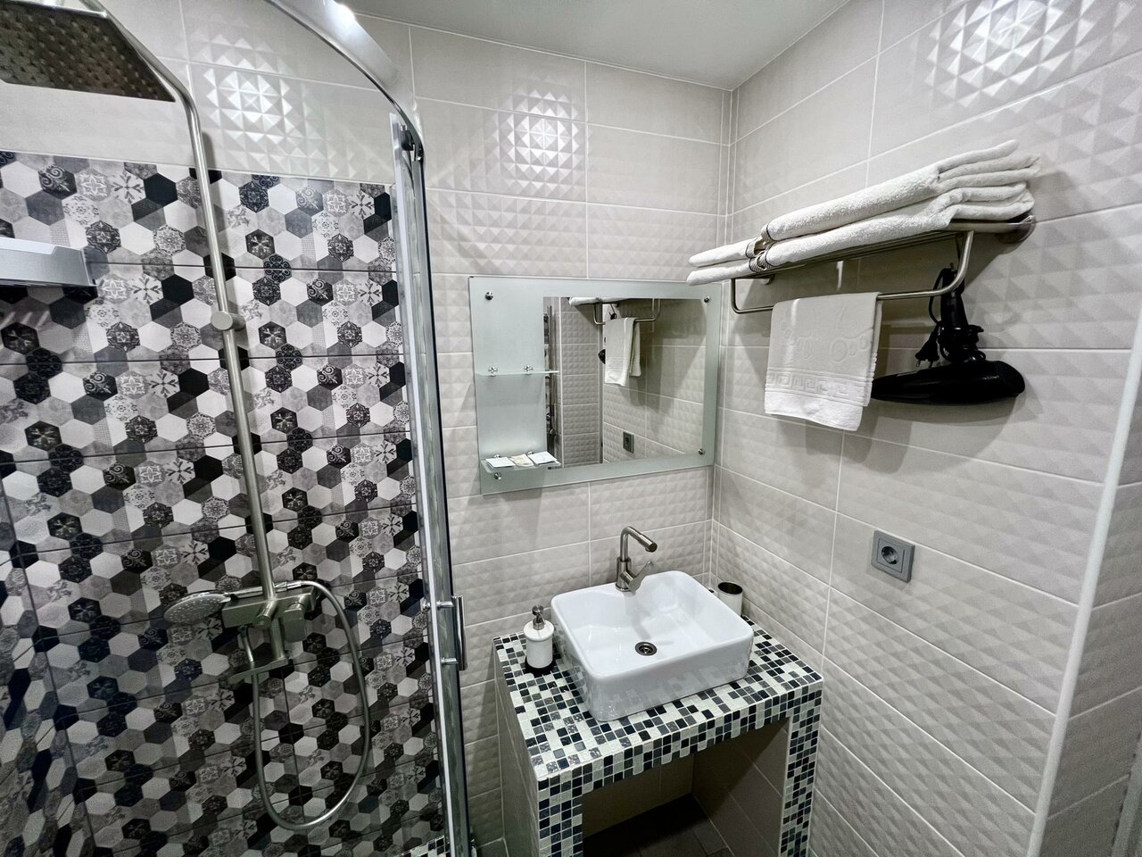 Хорошая гостиница, номер чистый,в номере 1 кровать двуспальная, одна односпальная, небольшая кухонька, оснащённая техникой, маленький холодильник, так же в самом номере имеется туалет и душевая. На территории расположена детская игровая зона, с горкой