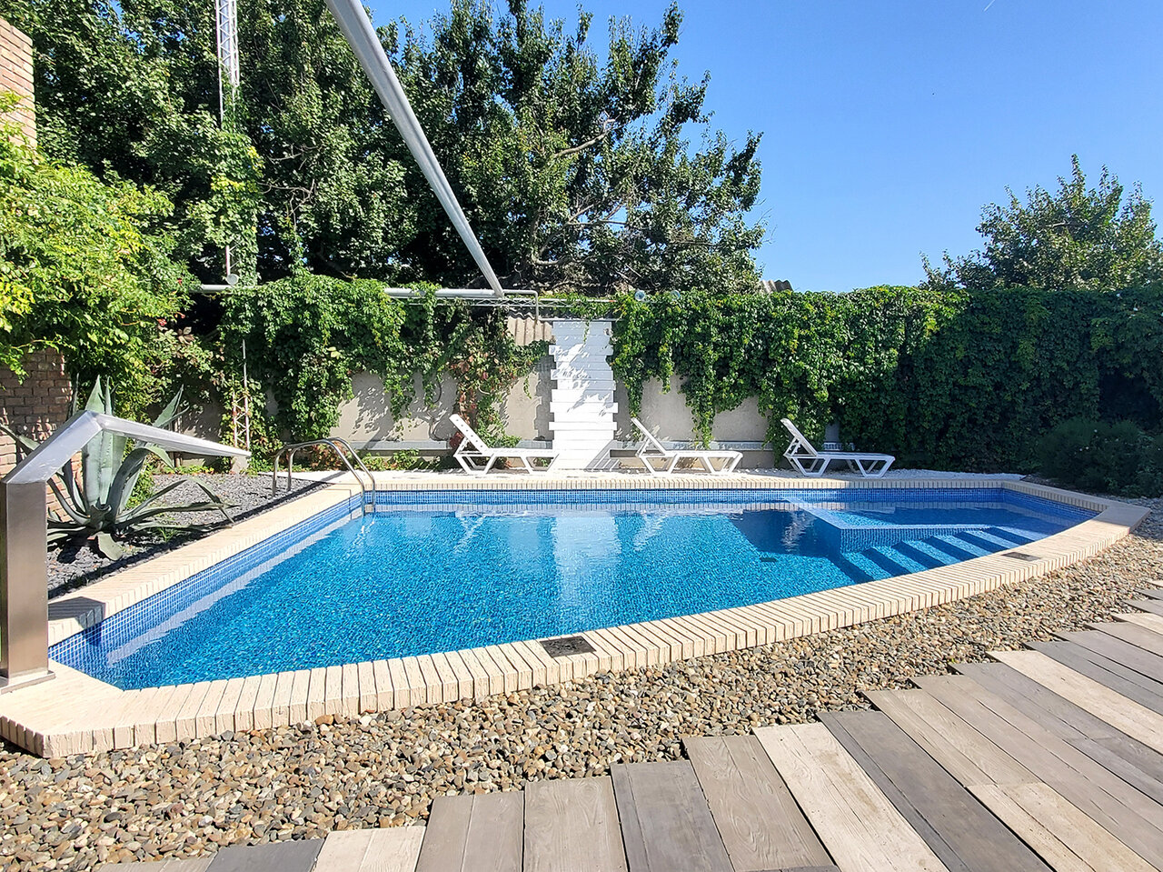 Отличное место для отдыха))) Есть бассейн и свое кафе. Недалеко от моря.
