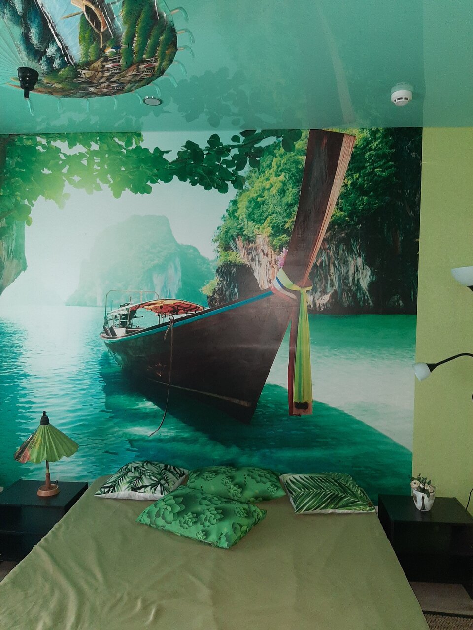 Прекрасная гостиница. Номера стилизованы под различные тематики. Мы были в номере Баунти. Кондиционер, холодильник, чайник, душ и туалет в номере. Набор белоснежных полотенец Все чисто и опрятно. На территории — общая кухня, столики для приема пищи, детская оборудованная площадка с качелями, батутом и игровой зоной. Мангальная зона. Бассейн — Отдельный огроооомнейший бонус. Всегда чистый и прохладный. Хозяева приветливые, всегда готовы помочь. Рекомендую. Из 5 — 10 звезд. P.S. Отдельный плюс — это постоянный напор воды. И горячей и холодной. Что не мало важно. Обычно с этим на юге какие-либо заморочки.