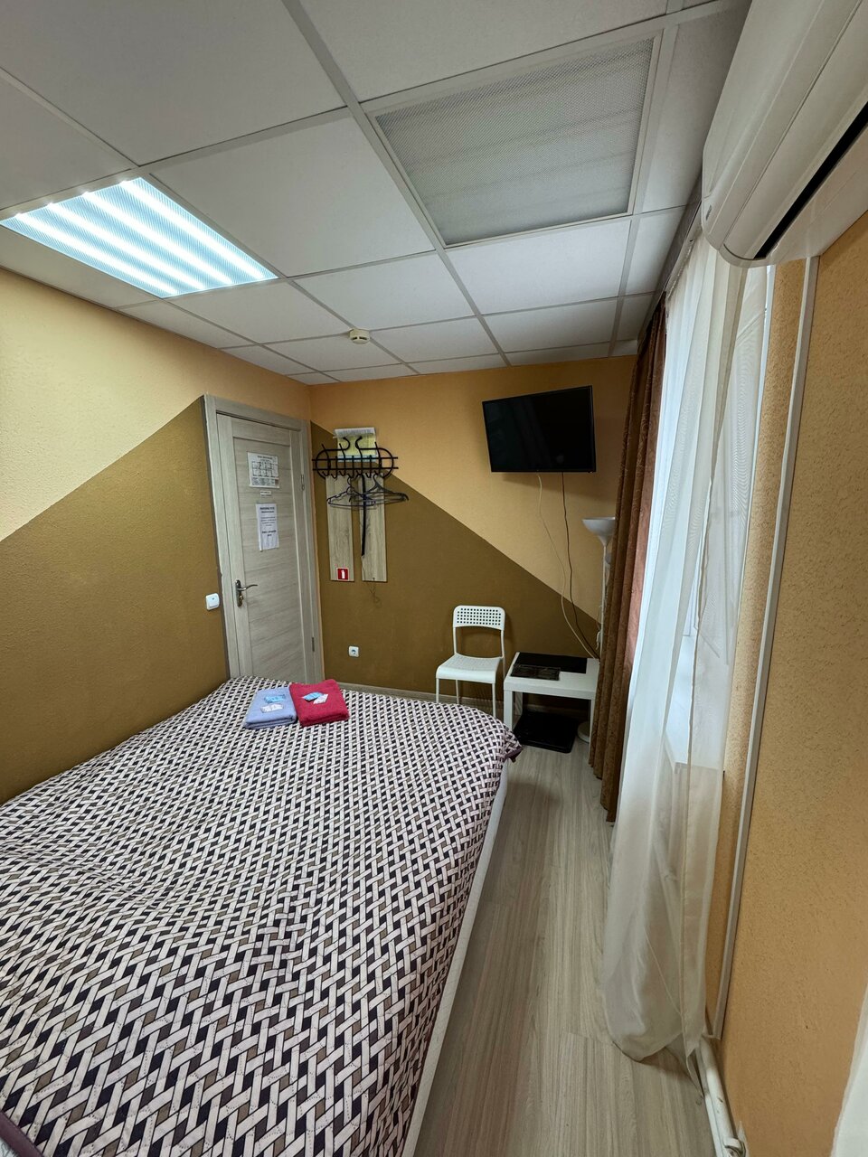 Очень дорого за МИКРО номер. Всего 2 полотенца в номере. Не работает пульт. Нет прикроватной тумбы. Телевизор старый и показывает отвратительно. Нет посуды вообще никакой. Оценка 1 по десятибальной шкале