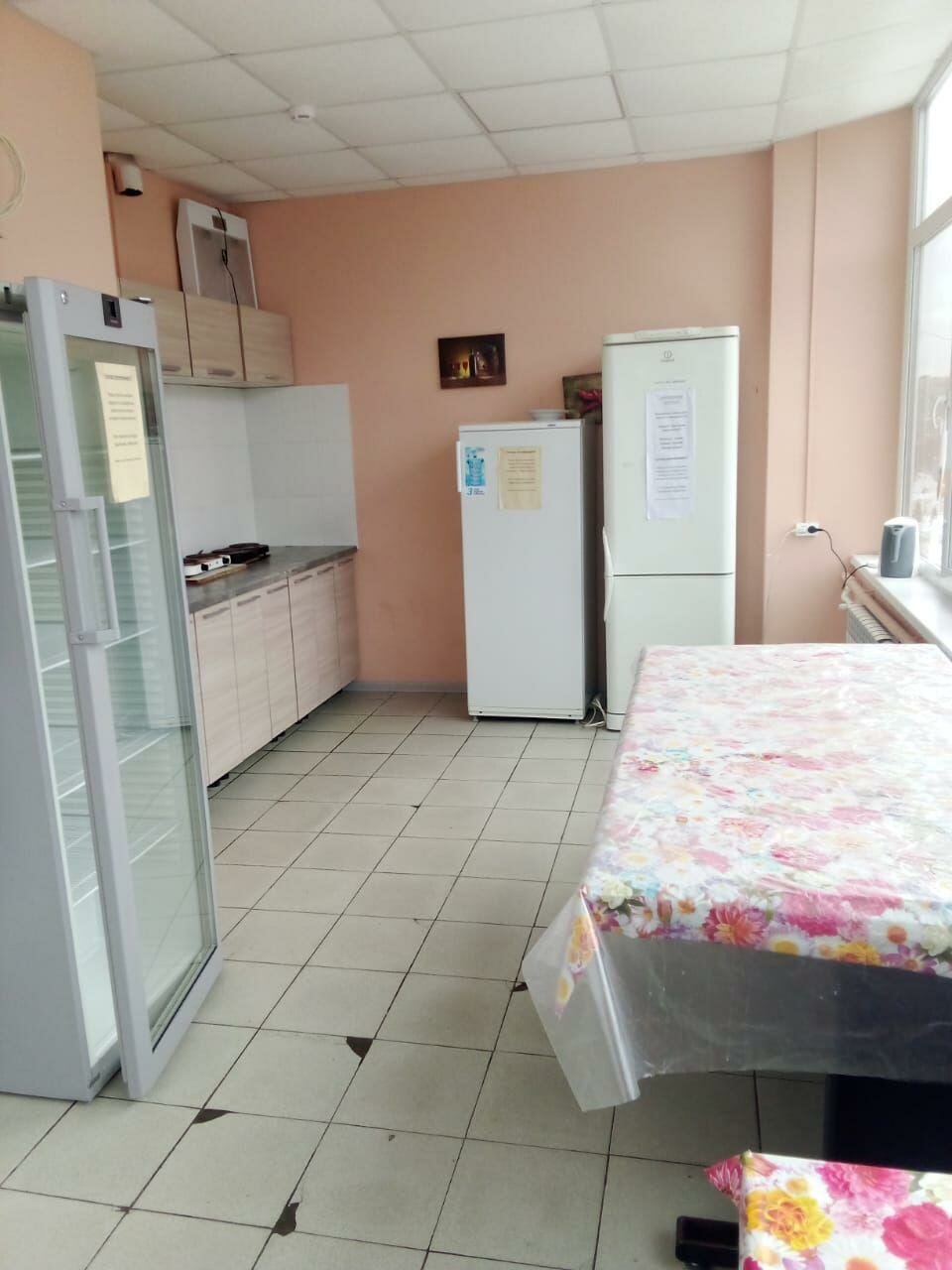 - Общая кухонная зона (холодильник, СВЧ, стол).