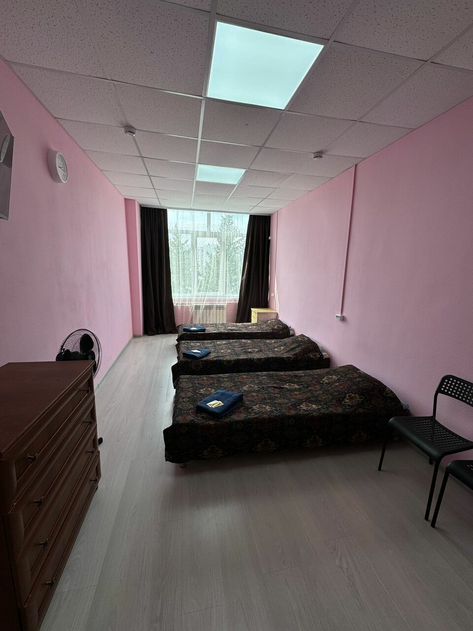 Персонал приветливый, относительно чистенько, холодильник один на все номера, туалет у кого то в номере, у кого то в коридоре. Зато у тех у кого в коридоре, душ в номере и можно попить, умыться или даже помыться не вставая с кровати Альтернатив в городе нет, только квартиры посуточно, которые тоже через одну ‘хромают’.