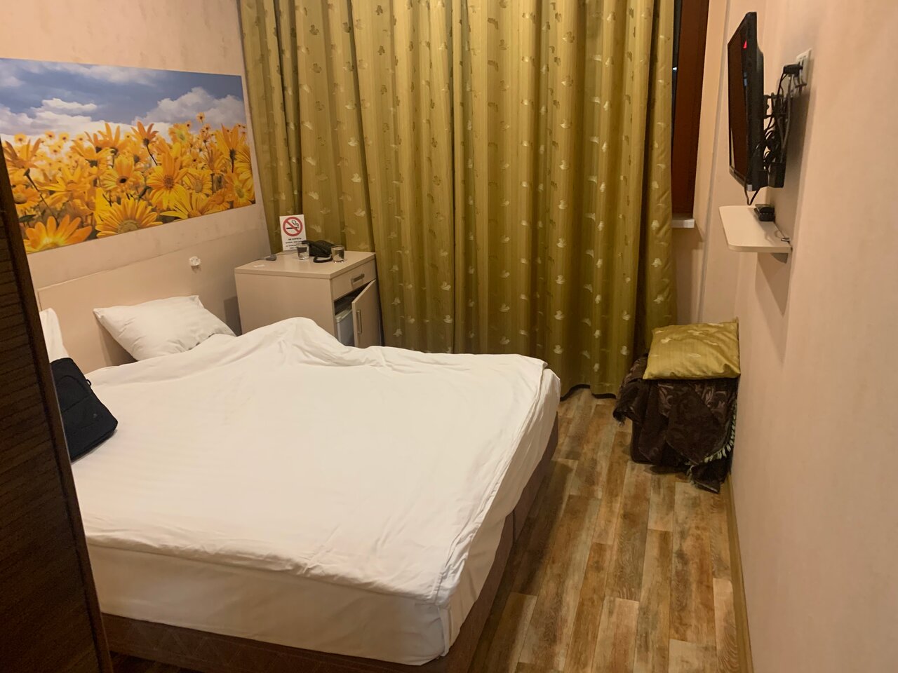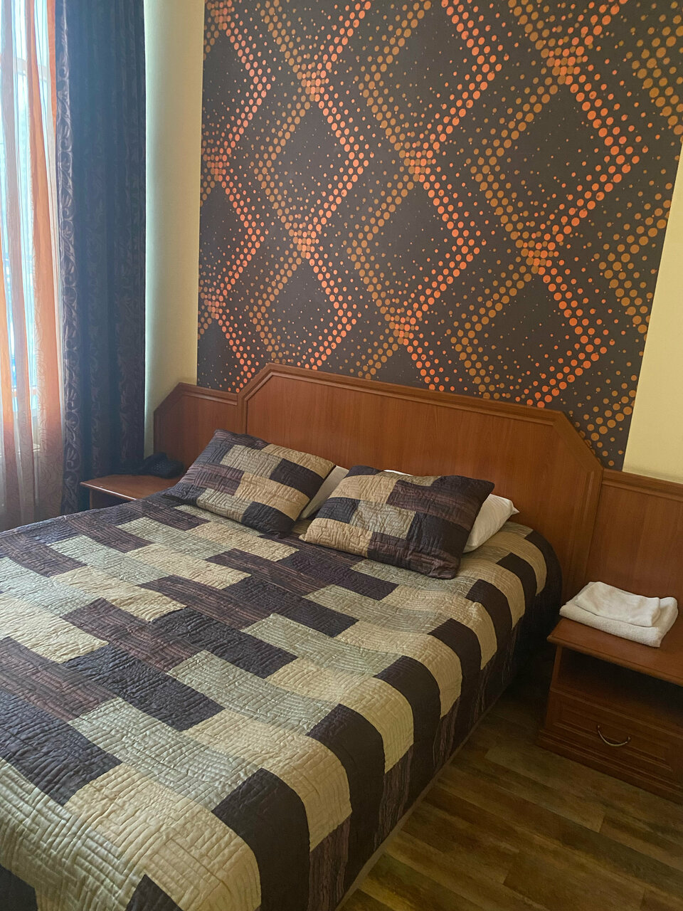 Неплохая гостиница, но дизайн номеров отдаёт нулевыми. Огромные розы во всю стену у изголовья — это не красиво, правда.