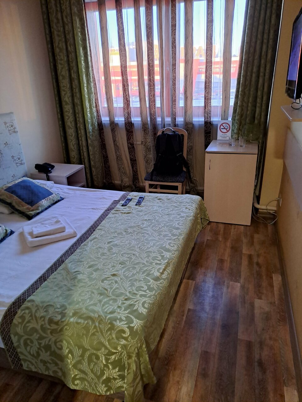 Останавливались по работе. Плюсы: Близко торговый центр и Якитория. Недорогая цена-. Минусы: Скудный завтрак. В номере нет чайника, узкие кровати .серое потертое белье. В номерах грязно.