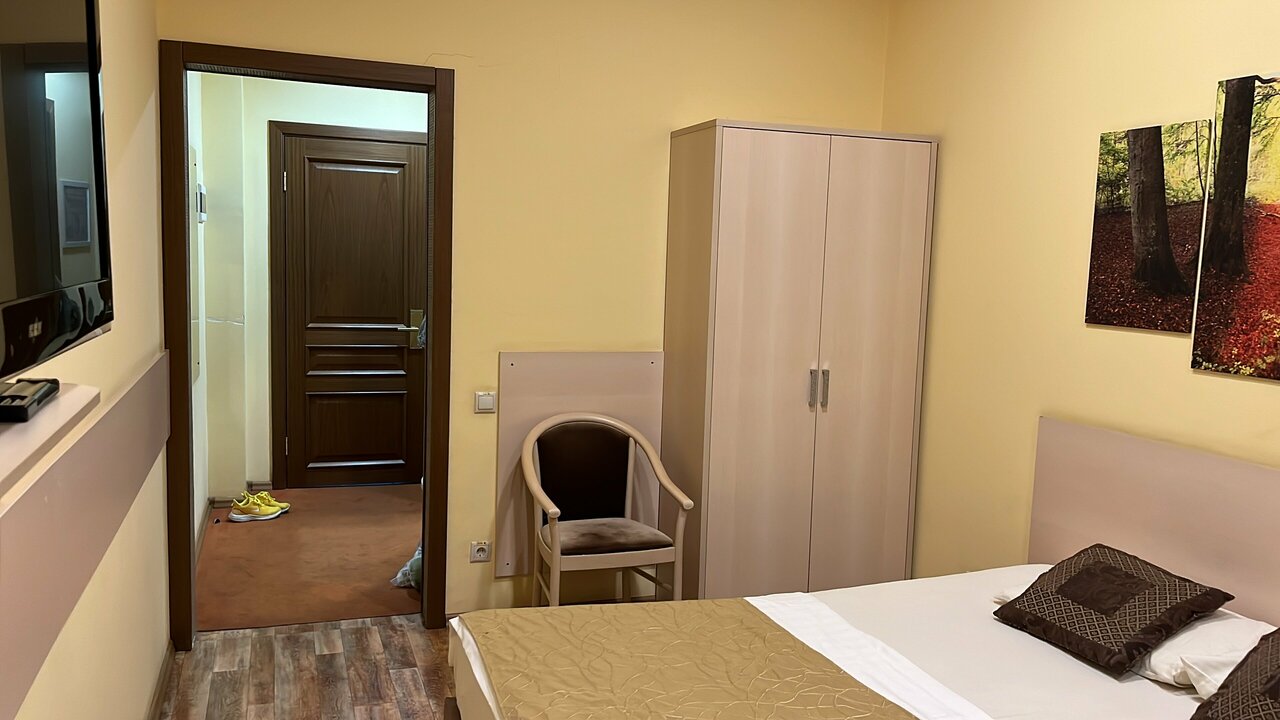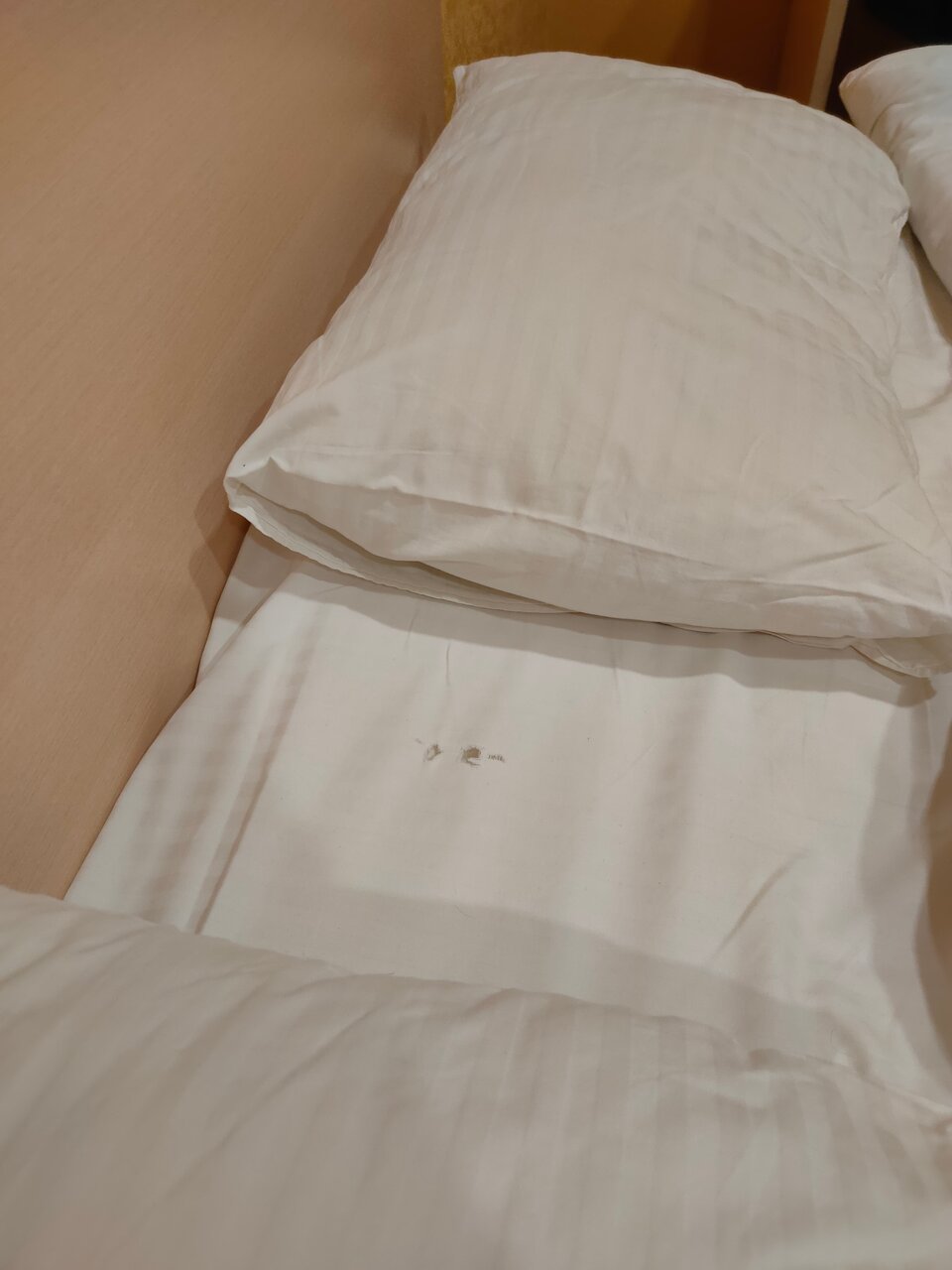 Я много езжу в командировки, много повидала гостиниц. Но такого чуда не встречала. При заселении администратор сказала, что лучше заплатить при выселении, а то вдруг что не понравиться, еще потом деньги возвращать… Уже здесь бы задуматься… Грязнущий коридор и серым от грязи ковром. Номер минимального размера, в нем нет шкафа, у коллеги не было даже стола. Про розетки удобные молчу. На ободке унитаза жёлтые не отмытые пятна мочи, полотенца — это тряпки обрезанные с дырками, на постельном белье желтые пятна. В душ не рискнула залезать. Завтрак типа шведский стол, но через 5 минут после открытия колбасы и сыра уже не было, на выбор сосиски или сардельки, каша и творог, несколько кусочков огурцов и помидор, печенье одного вида, но в двух местах:) сбежали оттуда сверкая пятками